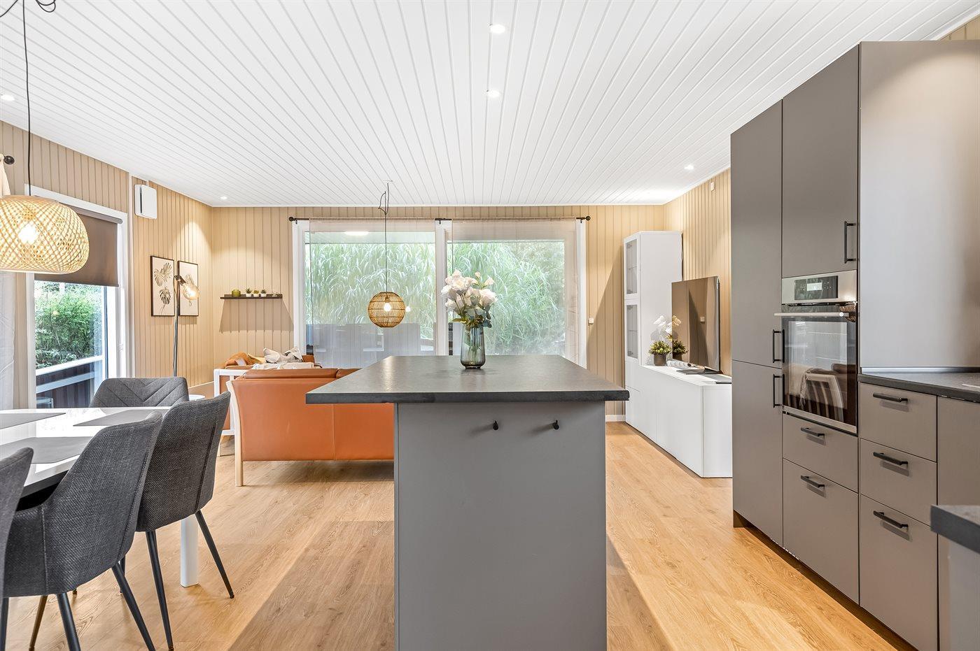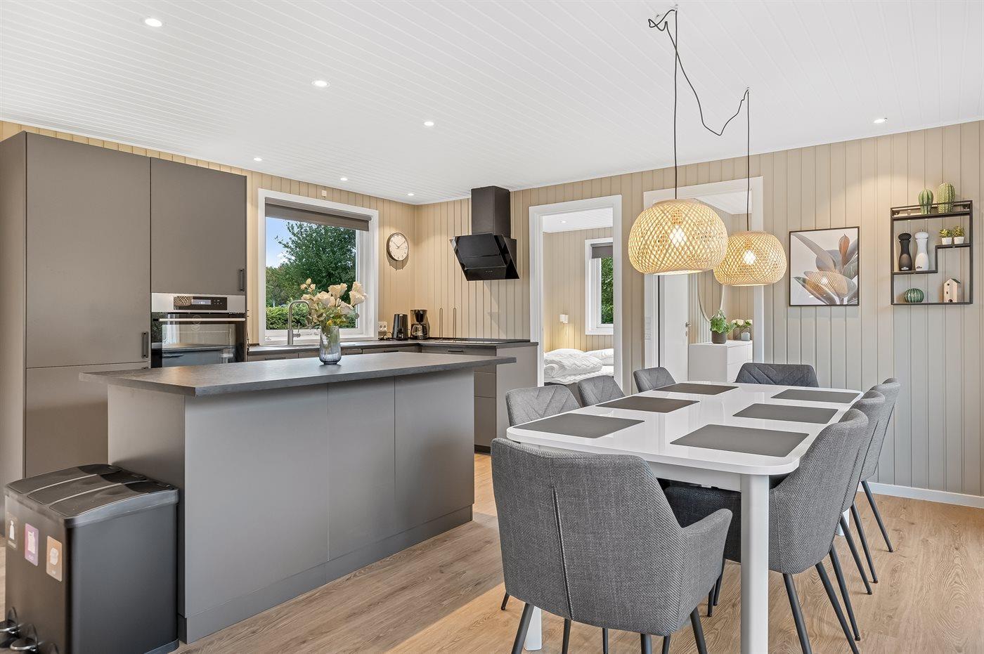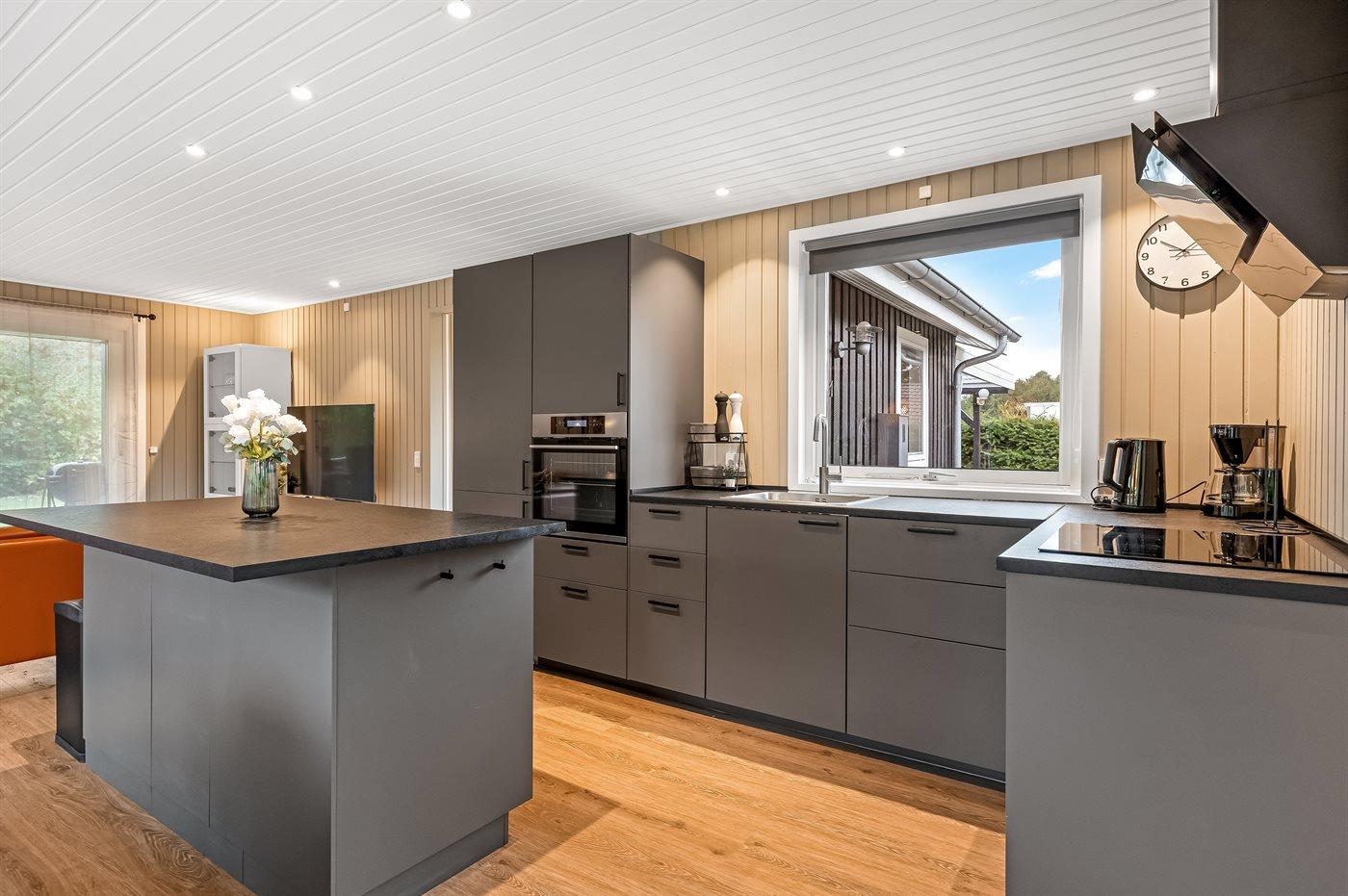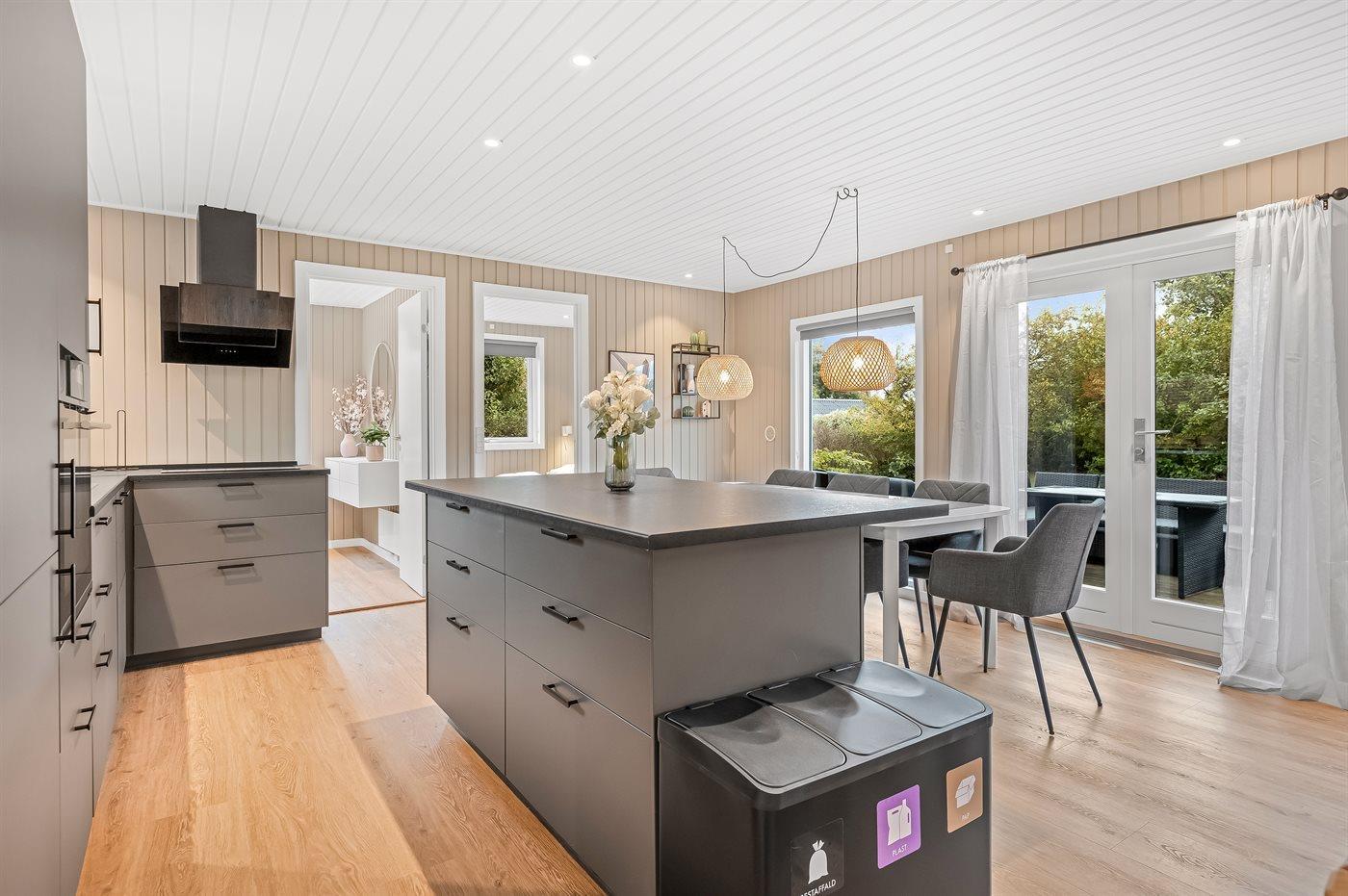 Køkkenet er udstyret med 1 køleskab. Der er 4 induktionskogeplader, varmluftovn samt opvaskemaskine.