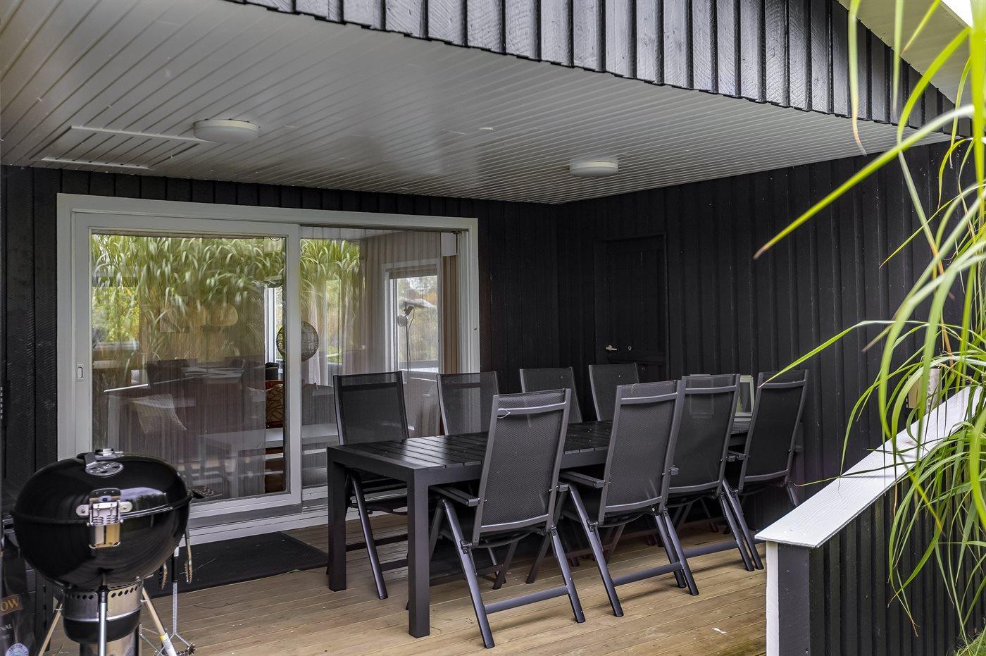 Ferieboligen er beliggende på en 1060 m² stor havegrund. Der er 450 m til havet. Nærmeste forretning er beliggende i en afstand af 2000 m. Der er en golfbane i en afstand af 15000 m. Til ferieboligen hører åbent terrasseareal. Desuden er der overdækket terrasse. Grill til rådighed. Der er installeret stik til opladning af elbil. Type 2 stik. Med 11 kW ladeeffekt. Parkering ved ferieboligen.