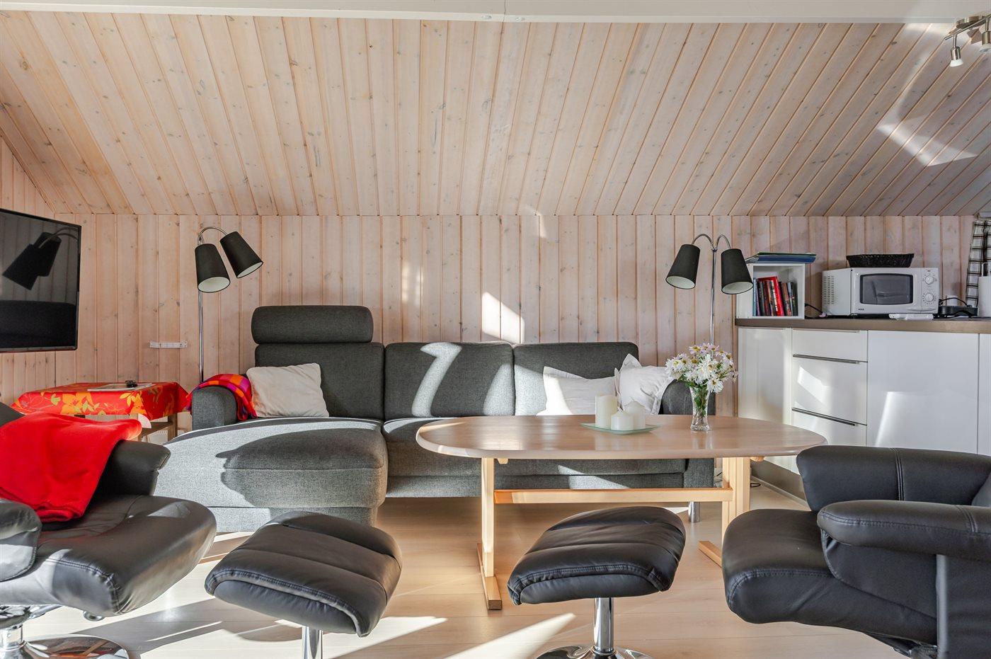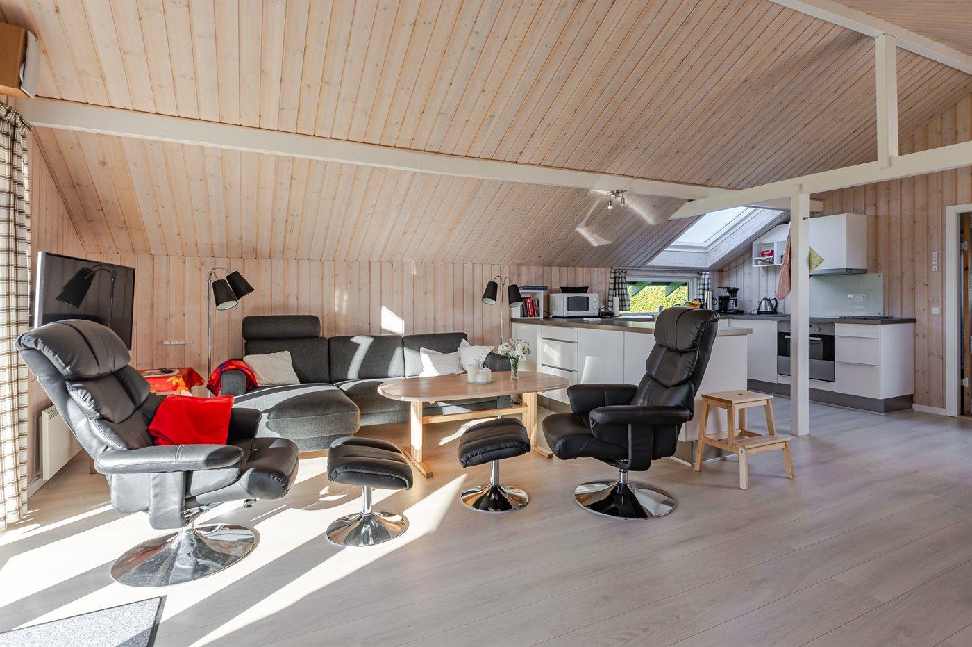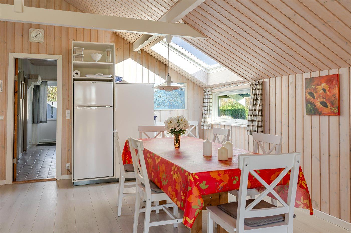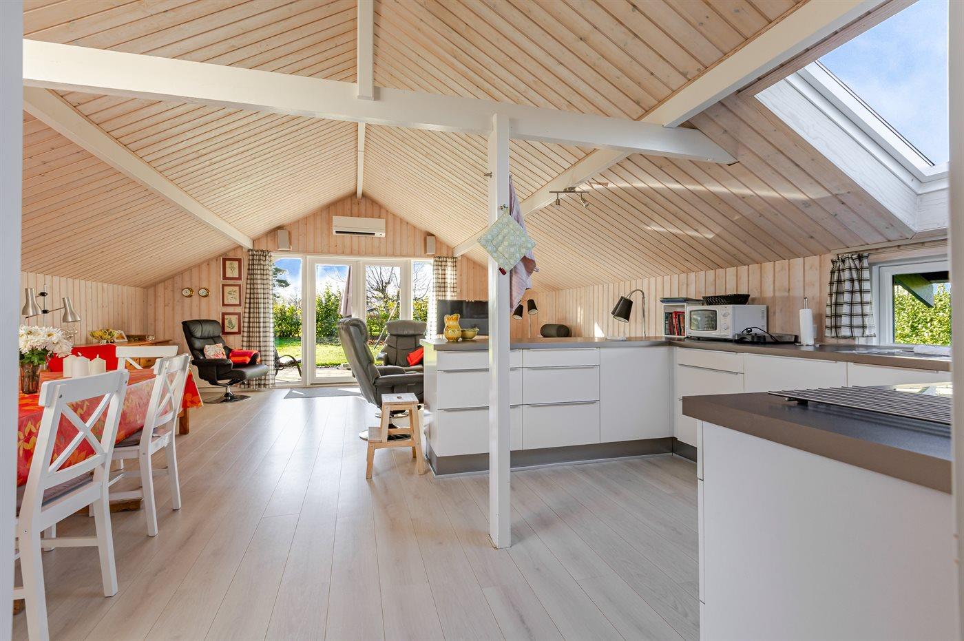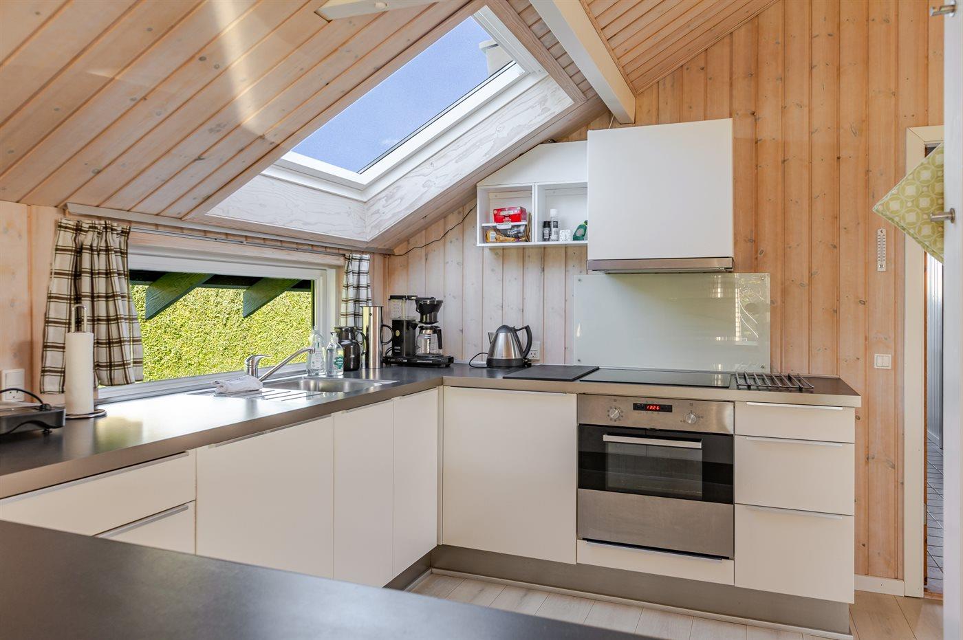 Køkkenet er udstyret med 1 køleskab. Der er 4 induktionskogeplader, varmluftovn, mikrobølgeovn samt opvaskemaskine.