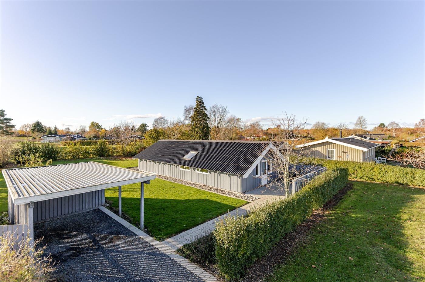 Hyggeligt sommerhus i Skovmose på Als med overdækket terrasse og kort afstand til strand og naturoplevelser.