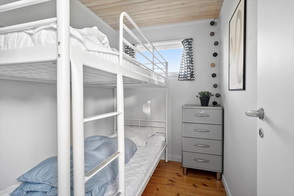 Det lille hyggelige sommerhus er beliggende for enden af lukket vænge i den gamle del af Skovmose med kort afstand til Als’ i særklasse bedste badestrand. Huset indeholder lille entré / vindfang, køkken i åben forbindelse med spise og opholdsstue, soveværelse med dobbeltseng og soveværelse med køjer og endelig badeværelse med bruser. Haven er primært udlagt med græs og indbyder til boldspil og leg. Find en skyggefuld plet på plænen eller terrassen med en god bog og en kop kaffe mens ungerne får brugt lidt af den ungdommelige energi.
