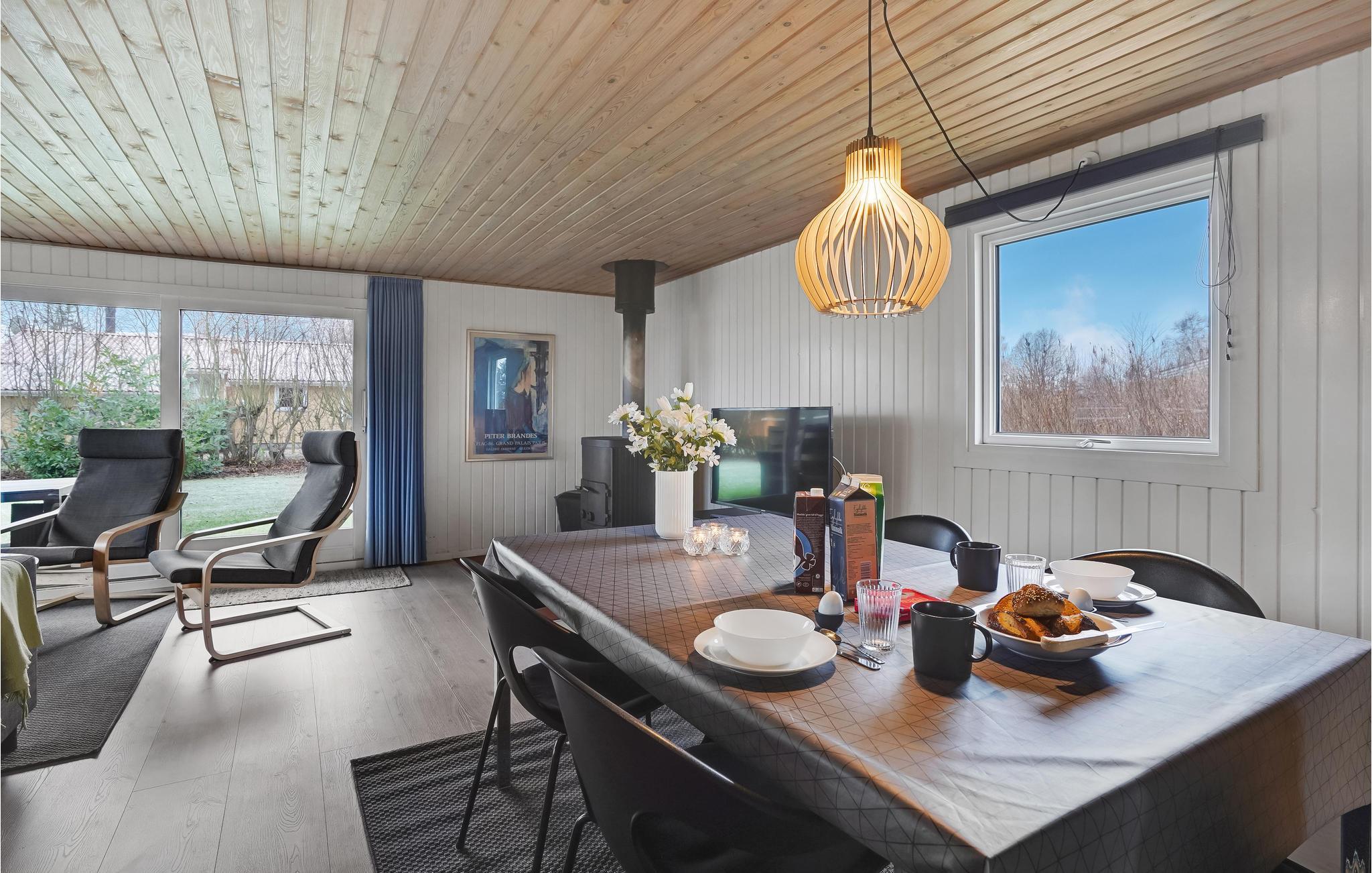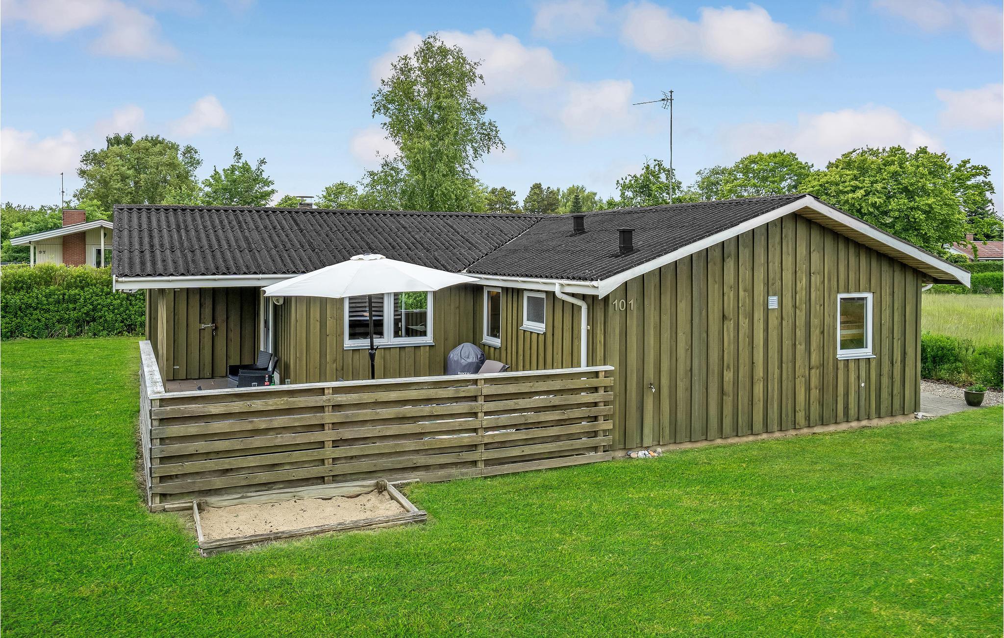 Hyggeligt sommerhus nær børnevenlig sandstrand i Skovmose med sauna og gratis parkering.