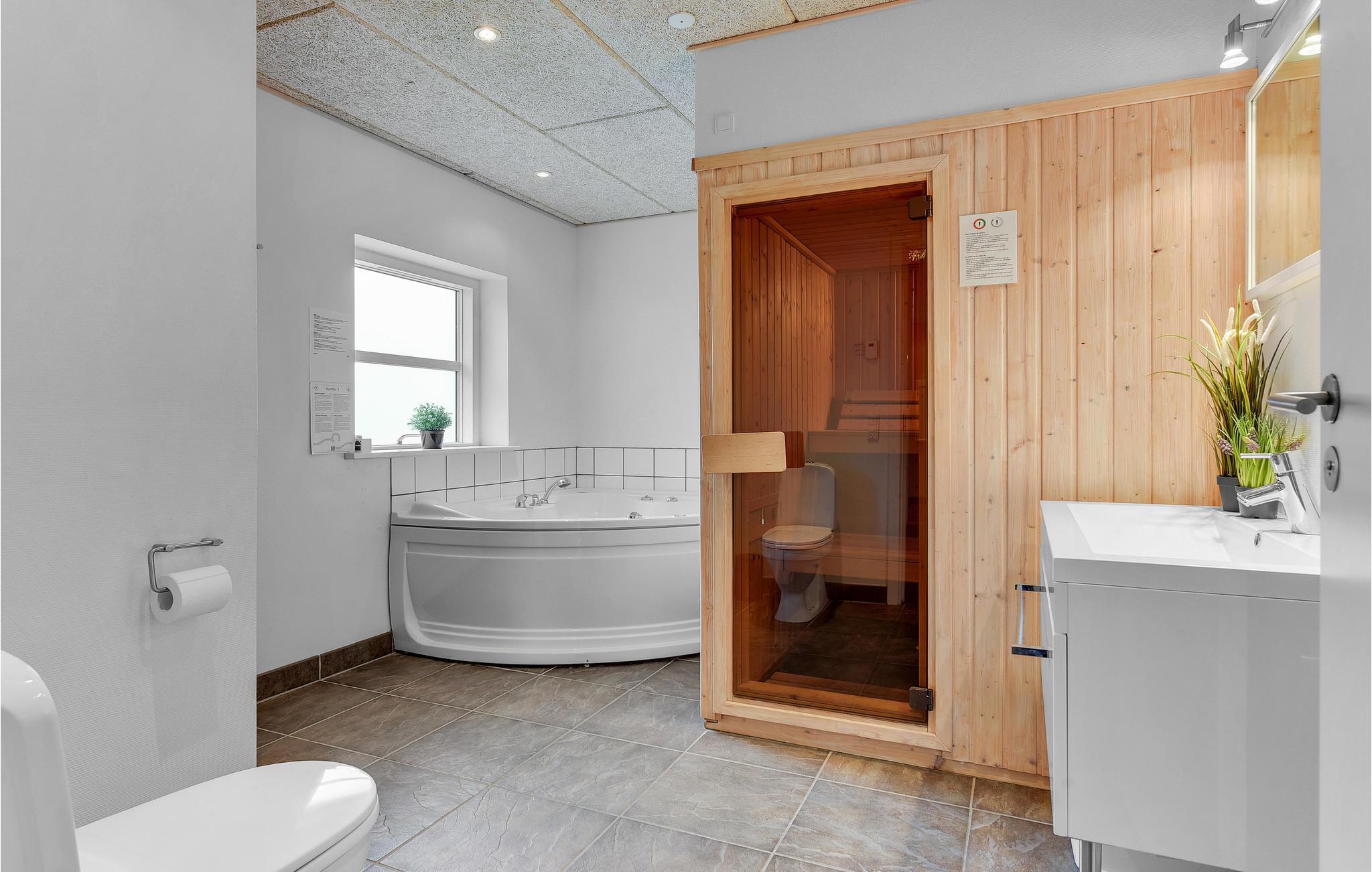Dejligt sommerhus ved Skovmose Strand med sauna, spabad og aktivitetsrum, tæt på Østersøen og familievenlige strande.