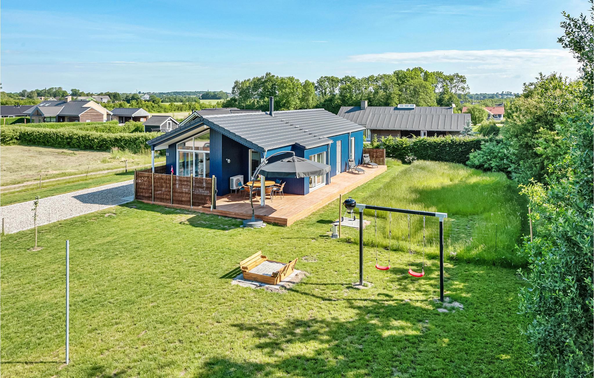 Dette dejlige sommerhus er beliggende i det rolige område ved Skovmose Strand. Østersøens klare og rene vand samt den familievenlige strand ligger i gåafstand fra sommerhuset. Det veludstyrede køkken ligger i åben forbindelse med spiseafdelingen og opholdsstuen. Her er der en dejlig brændeovn, som I kan benytte på kølige dage og aftener. Huset har to badeværelser, hvor af det ene har en sauna og et spabad. Her kan I få masseret jeres muskler af det boblende vand efter dagens aktiviteter. Over alt i huset kan I benytte den trådløse internetforbindelse. På den store grund er der masser af plads til leg og boldspil for både små og store gæster.