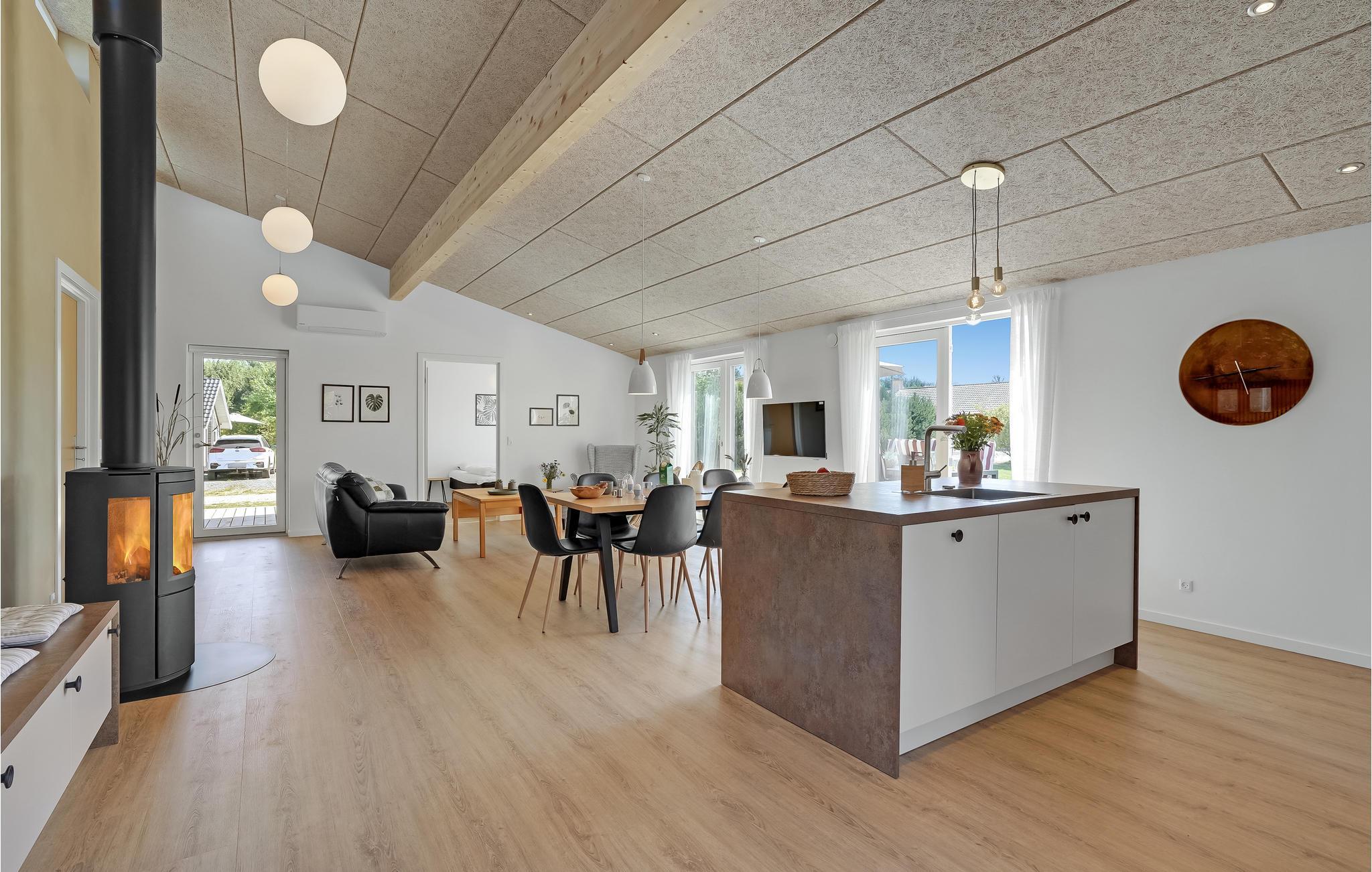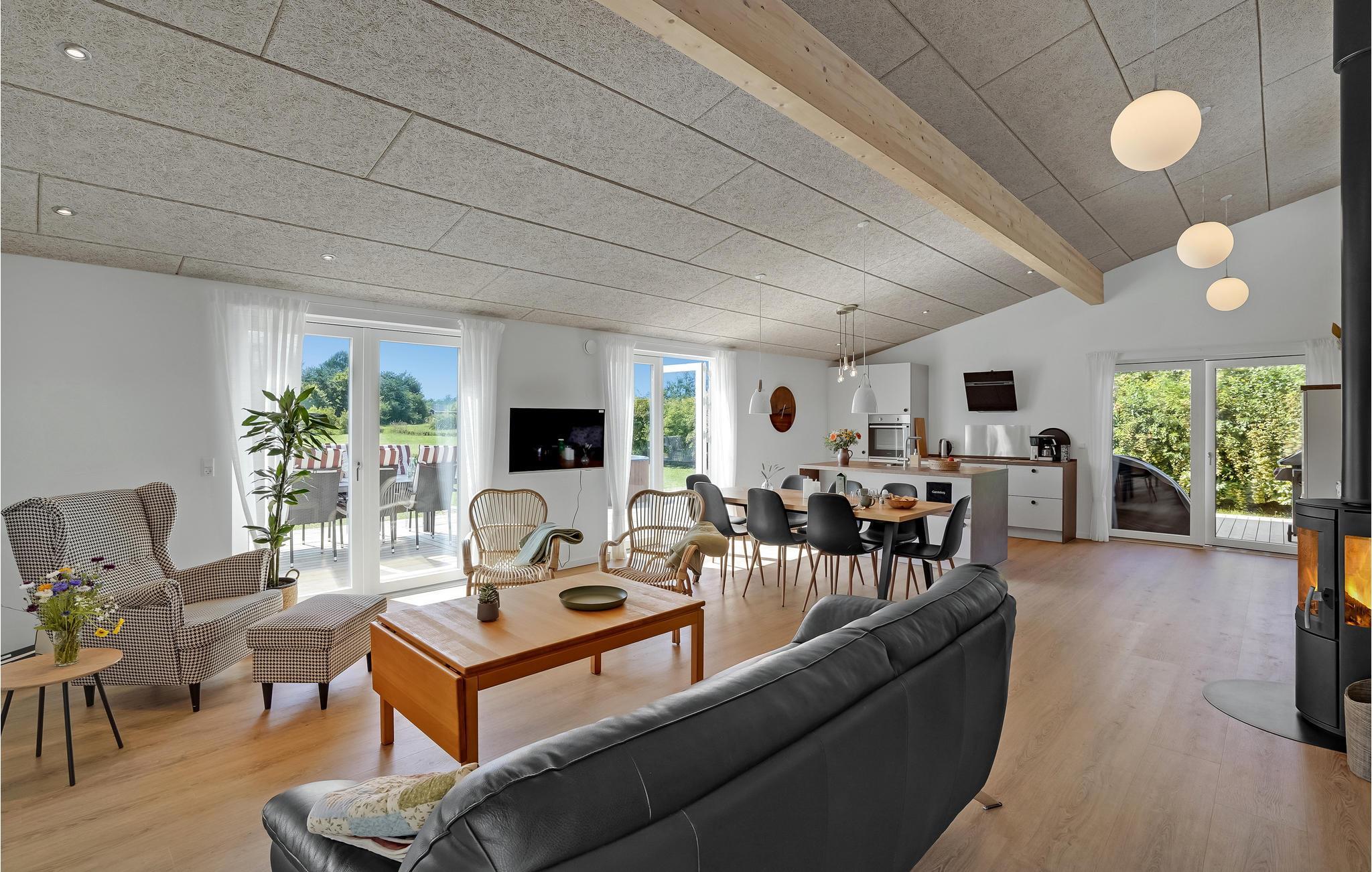 Velkommen til Skovmose, hvor dette stilfulde, moderne feriehus venter på jer. Hvad enten I sidder ude på terrassen med udsigt over haven, i vildmarksbadet eller i den åbne stue foran brændeovnen - indretningen af dette hus udstråler en behagelig atmosfære, der får jer til at lægge hverdagen bag jer og finde ind i feriestemningen.
