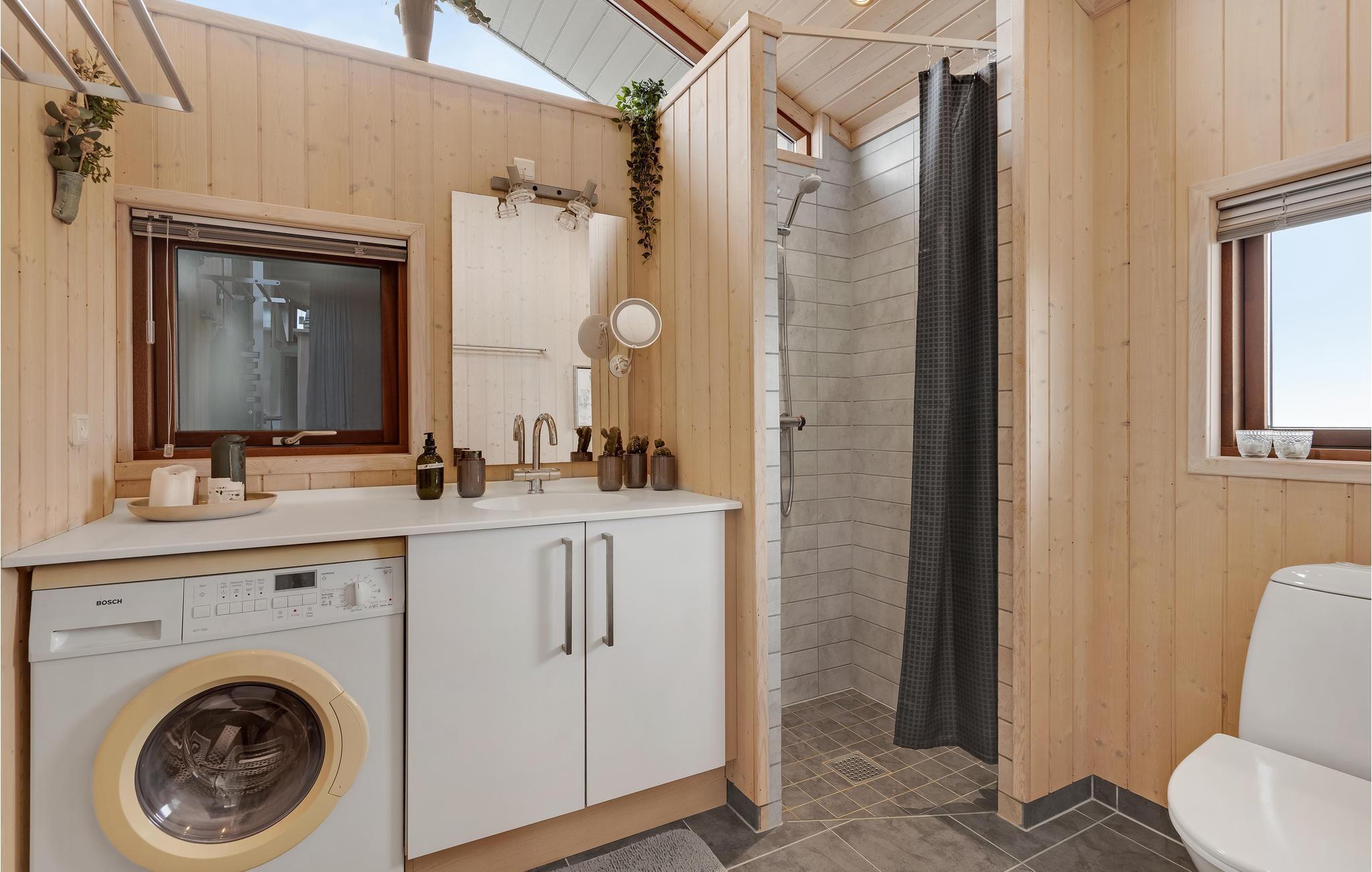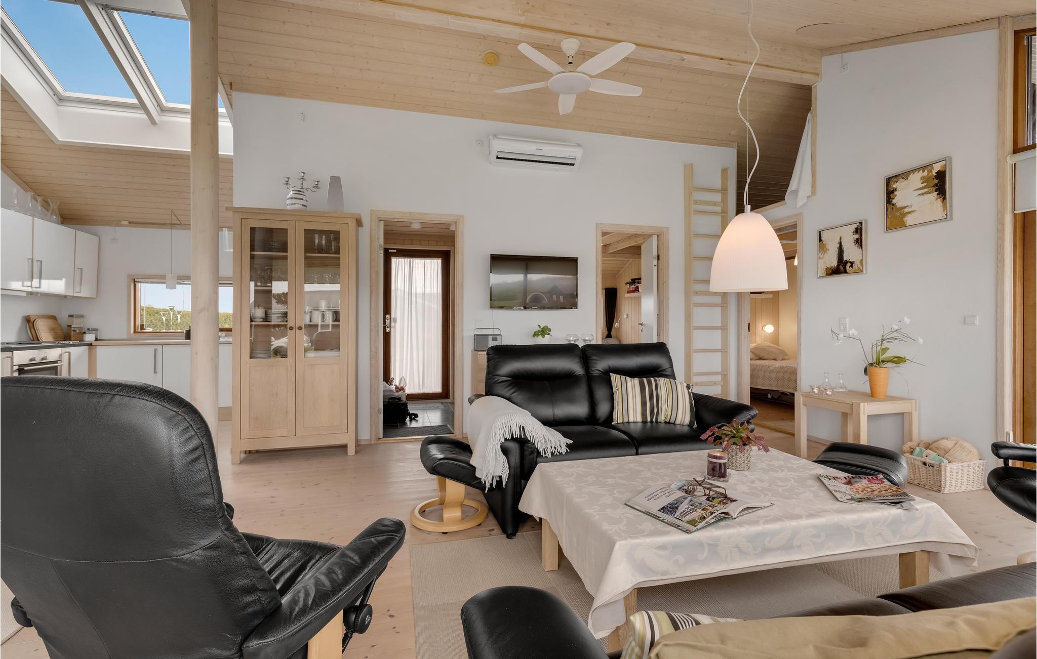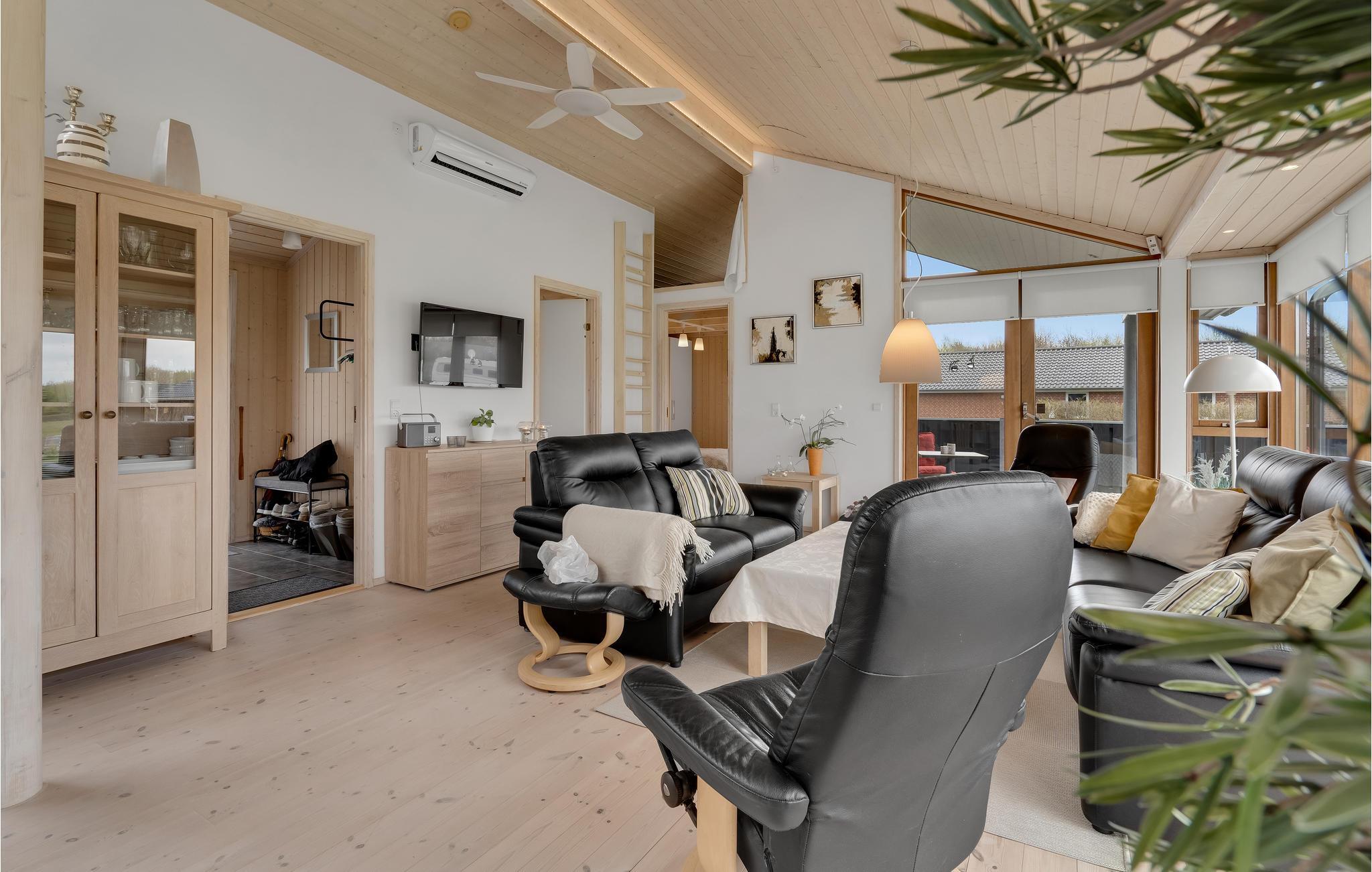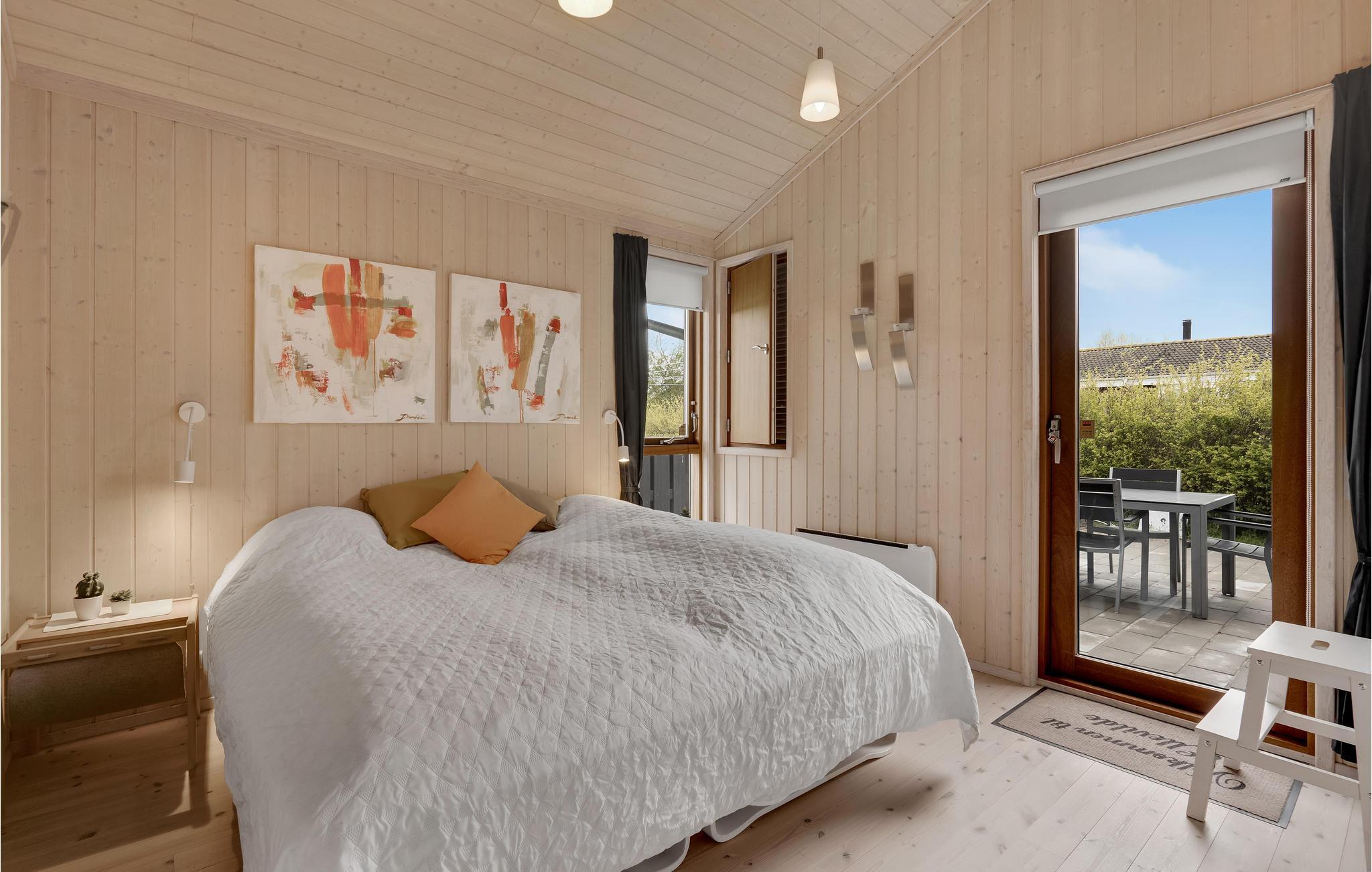 Hyggeligt sommerhus i Skovmose nær stranden med terrasse, have og moderne faciliteter for en afslappende ferie.