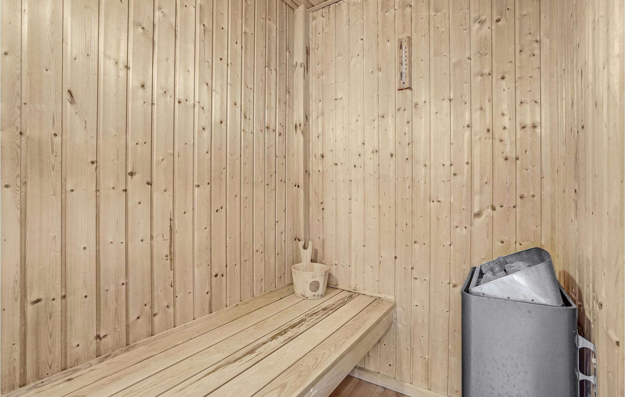 Få hundrede meter fra den nærmeste sandstrand dette hyggelige sommerhus, som har en lys og behagelig indretning. Her får I skønne rammer om familiehyggen, uanset om vejret egner sig til at sidde på terrassen eller slappe af indendørs. På kølige dage kan I tænde op i pejsen eller benytte saunaen.