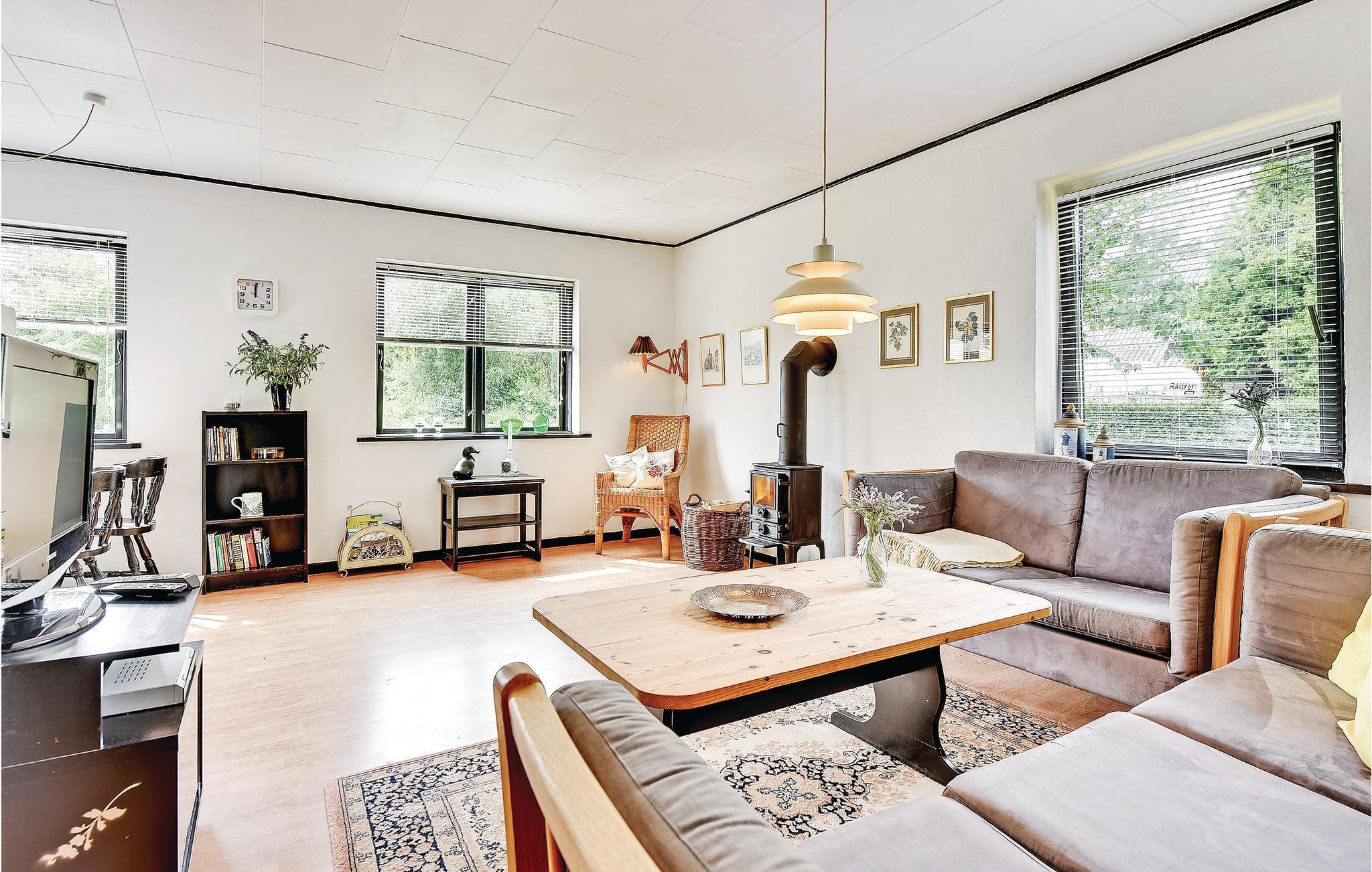Dette hyggelige feriehus er beliggende i Skovmose, kun få minutters gang fra den familievenlige badestrand og Østersøens klare vand. Husets åbne køkken ligger i forbindelse med spiseafdelingen og opholdsstuen. I stuen er der både en brændeovn og en energivenlig varmepumpe, som I kan benytte på de kølige dage og aftener. Over alt i huset kan I benytte den trådløse internetforbindelse. Til huset hører et dejligt terrasseområde, hvor af en del er overdækket. Her kan I f.eks. nyde et dejligt måltid fra grillen, uanset hvordan vejret arter sig. Hvis I ønsker at afprøve jeres evner som lystfiskere i områdets gode fiskevand, så har I mulighed for at slagte dagens fangede fisk ved rensepladsen på den overdækkede terrasse. Her er også masser af frysekapacitet, hvis I er heldige med fiskeriet. I husets dejlige have er der masser af plads til leg og boldspil for både små og store gæster.