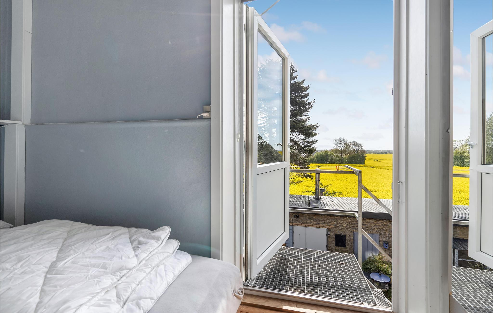Denne fine lejlighed ligger ud til marker og natur i en charmerende bygning med kort afstand til Skovmose Strand.