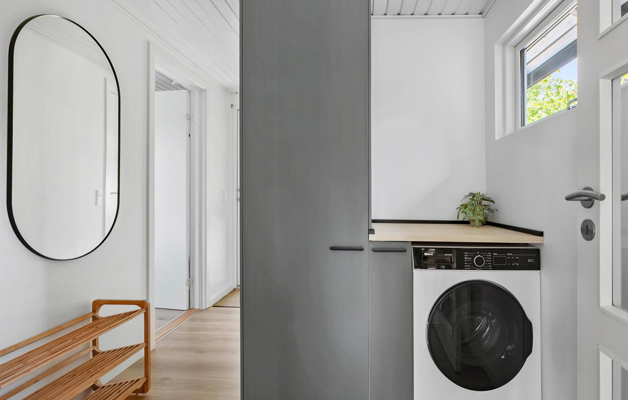 Komfortabelt feriehus tæt på Skovmose Strand med moderne faciliteter og rummelig terrasse.