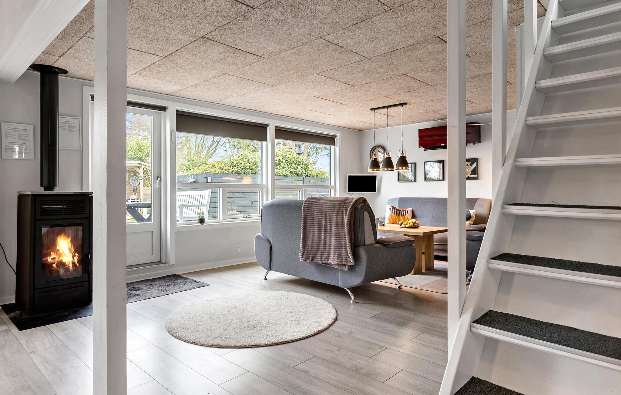 Beliggende i et velholdt boligområde med hyggelige haver byder dette charmerende feriehus jer velkommen. Indenfor finder I en smagfuldt indrettet stue med store vinduer, der giver en skøn udsigt til haven. Tilbered jeres yndlingsretter i det fuldt udstyrede køkken, og nyd dem i den lyse spisestue. Slap af med en god bog på de komfortable sofaer, eller stream en spændende film, mens lyden af den knitrende brændeovn skaber en hyggelig atmosfære.