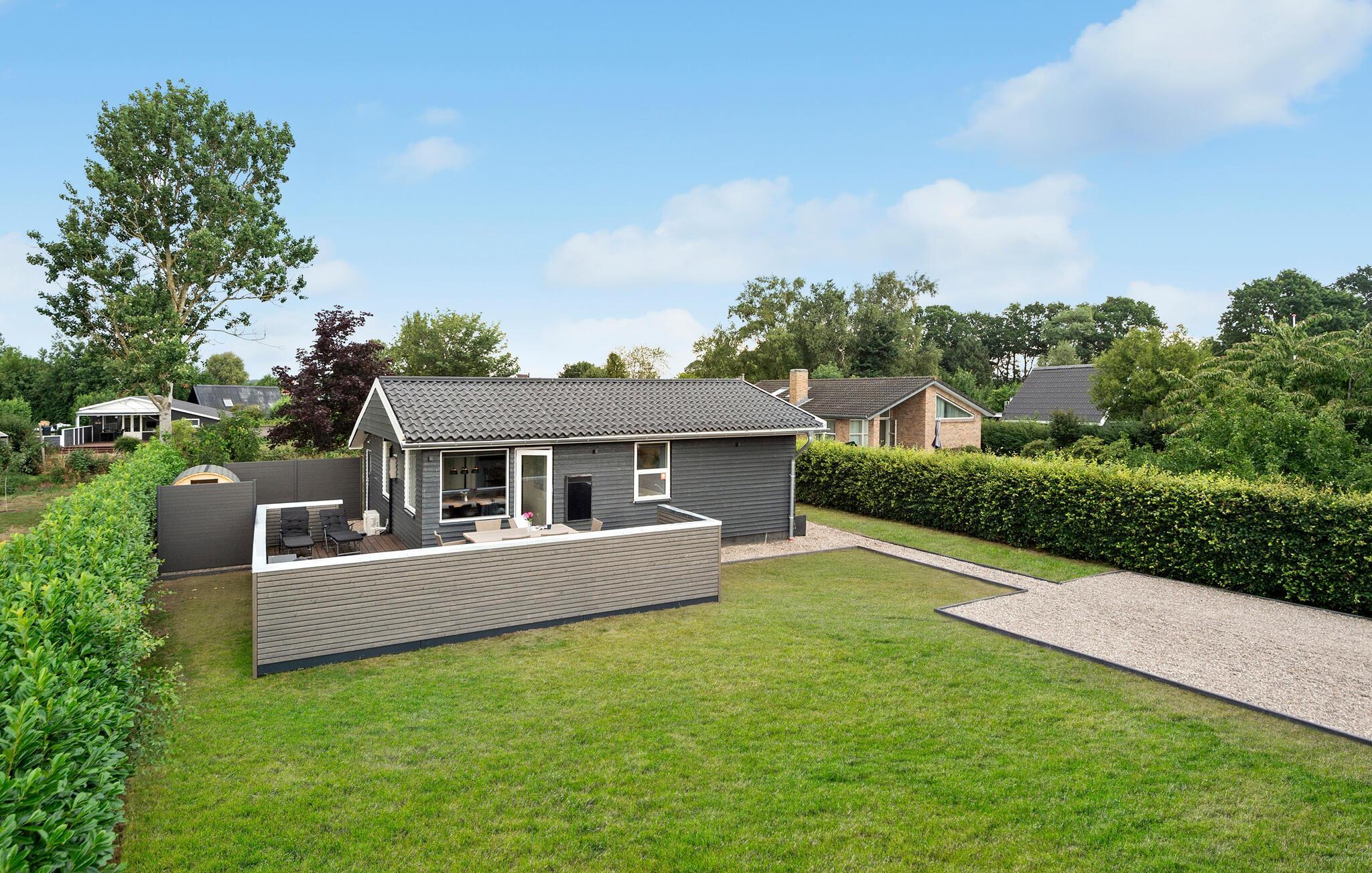 Skønt feriehus med sauna nær Skovmose Strand, perfekt til afslapning og familieoplevelser.