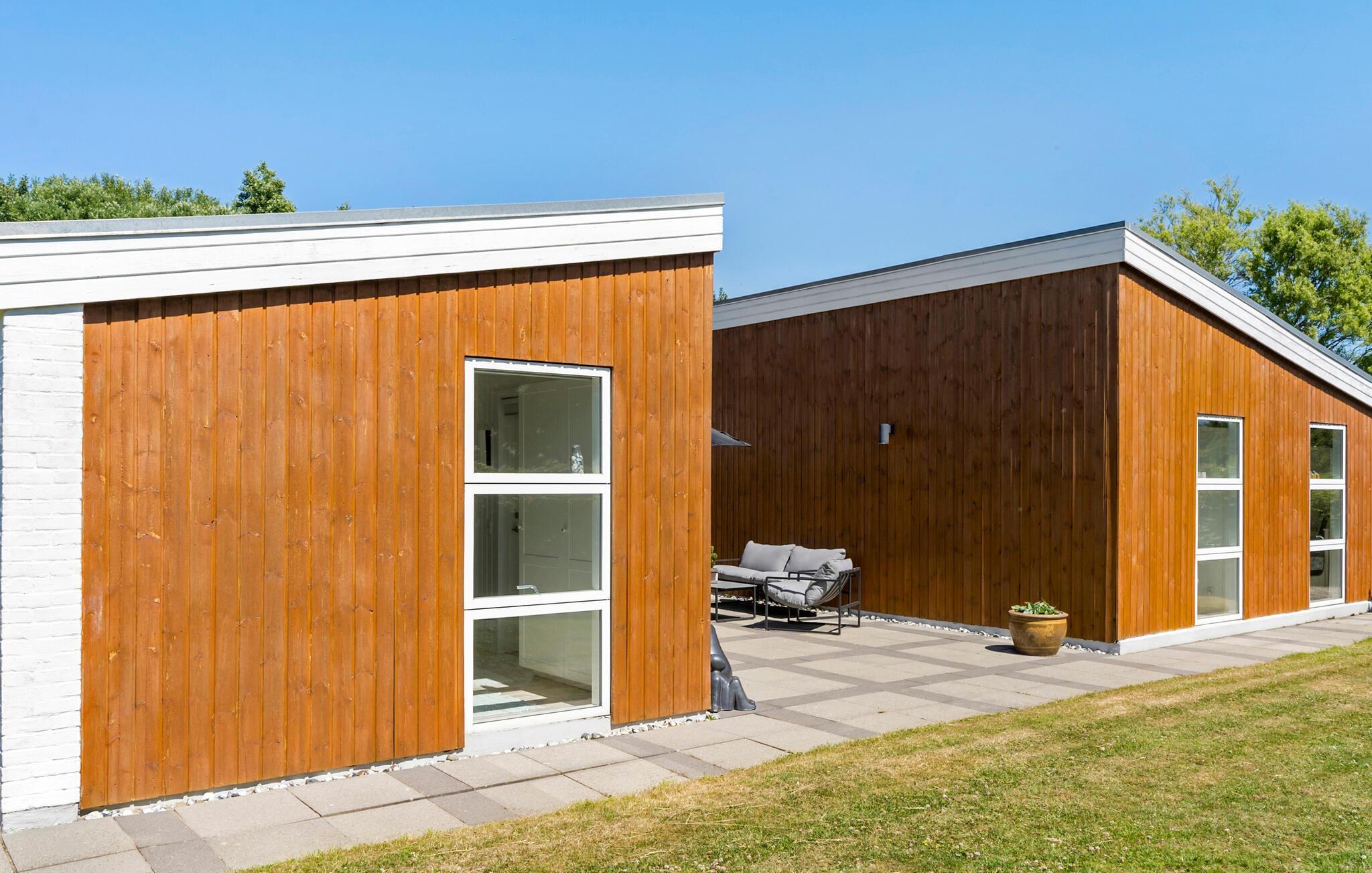 Udenfor inviterer den store terrasse jer til at nyde måltiderne udendørs. Senere kan I samle hele familien omkring bålet eller tage en dukkert i det udendørs spabad.