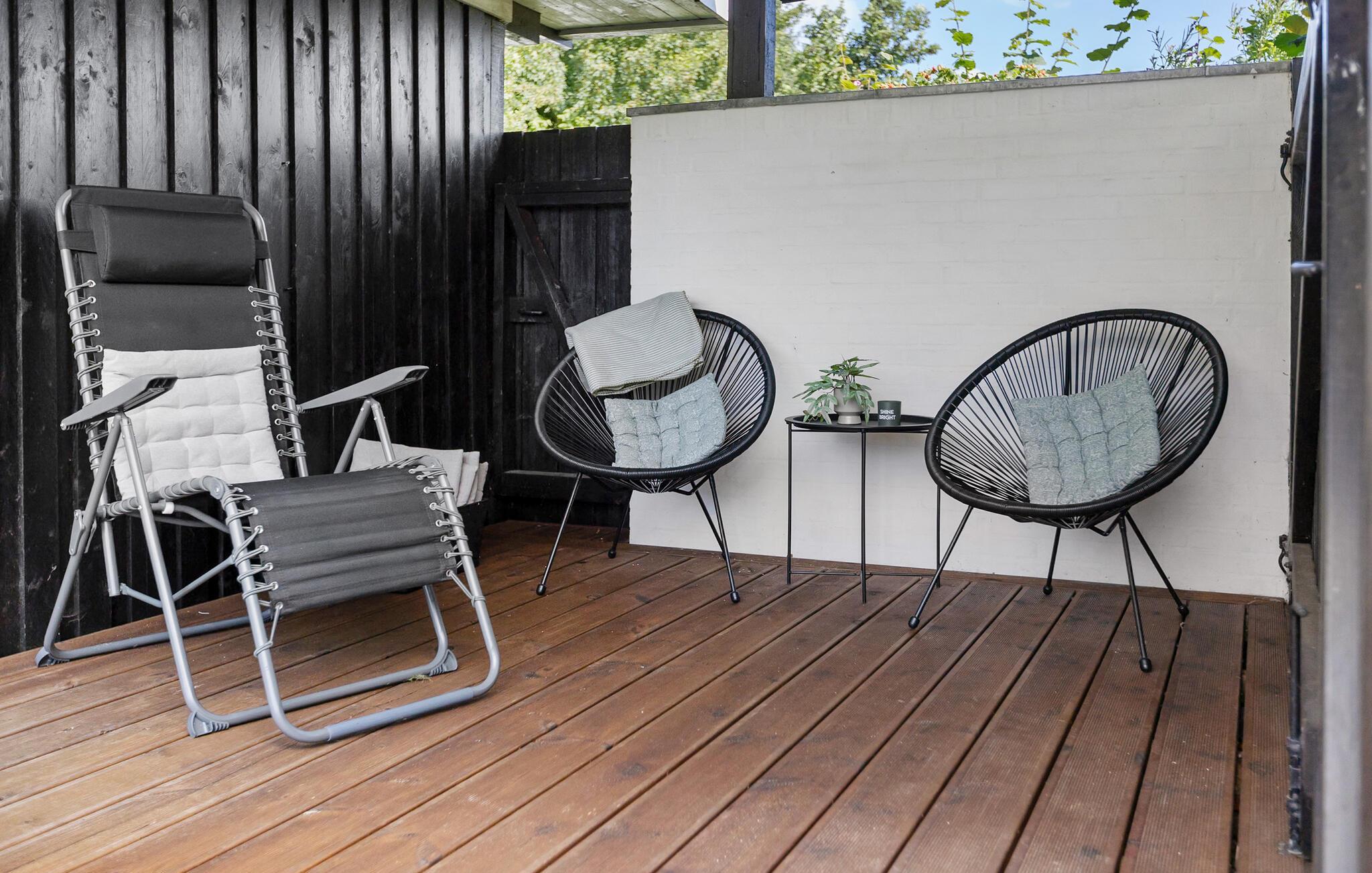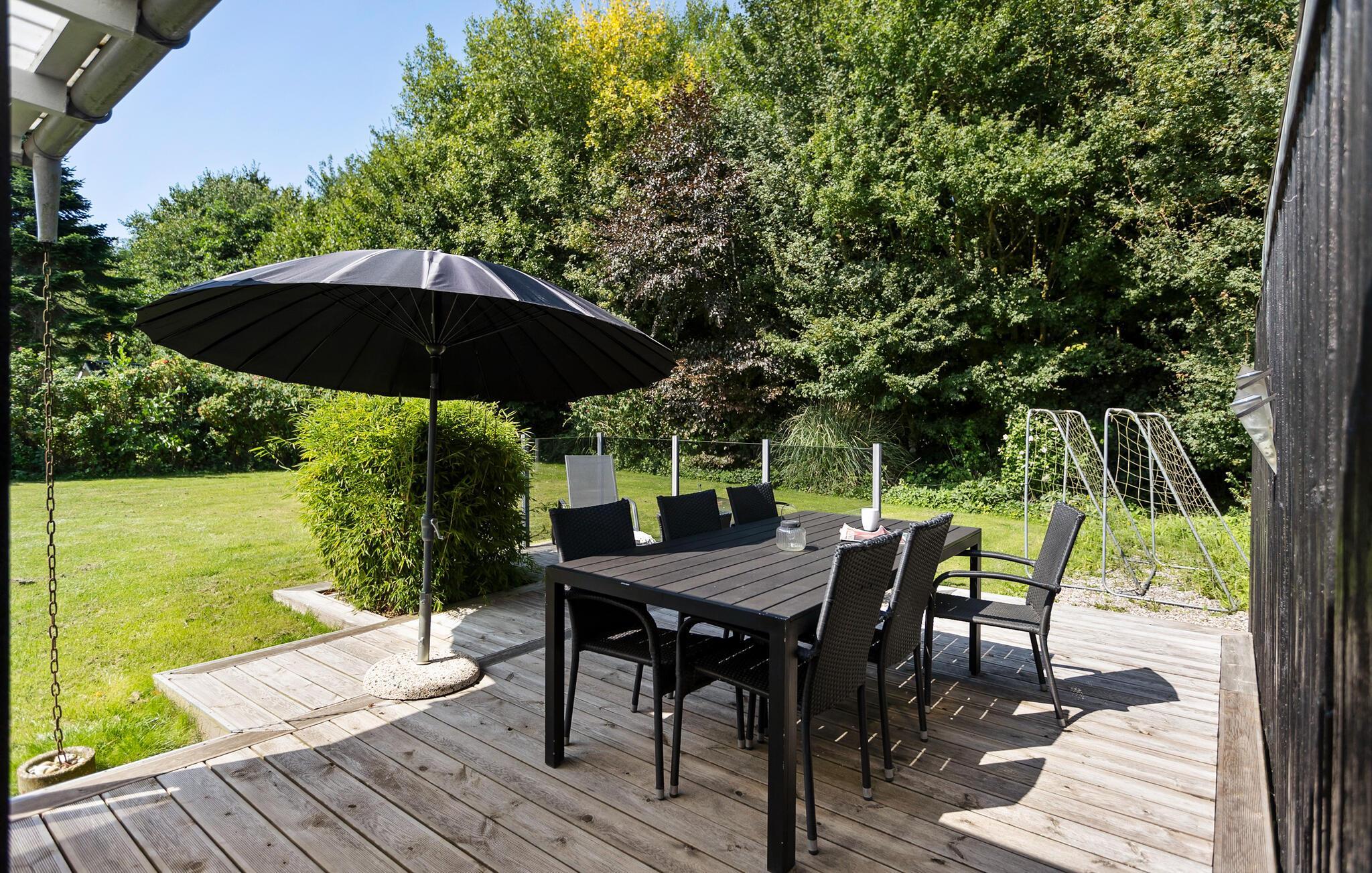 Tilbring afslappende timer på den møblerede terrasse, som tilbyder både solrige og skyggefulde steder. Nyd morgenmaden udendørs, mens børnene leger på den store græsplæne. For en særlig naturoplevelse er der en shelterhytte i haven, hvor I kan overnatte udendørs.