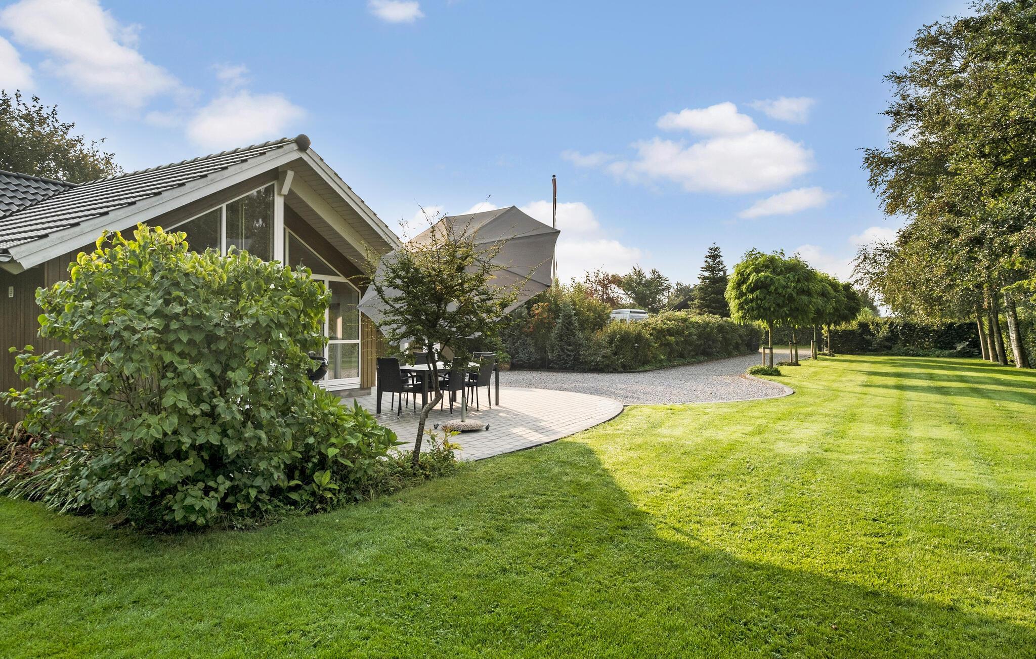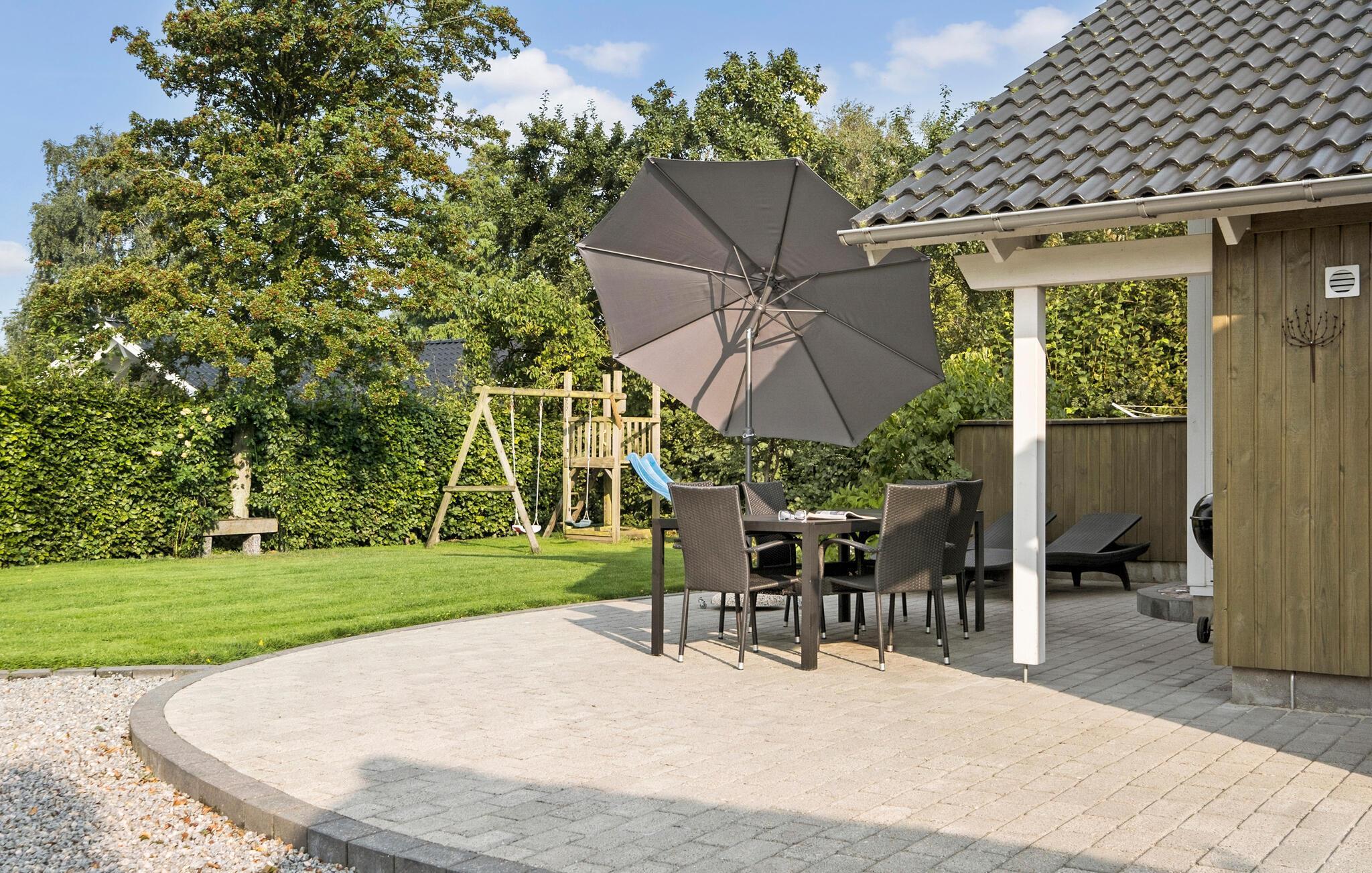 På solskinsdage kan I rykke ud på terrasse og drikke kaffen med udsigt til den velholdte have. Børnene finder en masse sjove legeredskaber, og der er god plads til boldspil på græsplænen. Efter en lang dag på farten er det herligt at læne sig tilbage i spabadet indendørs.