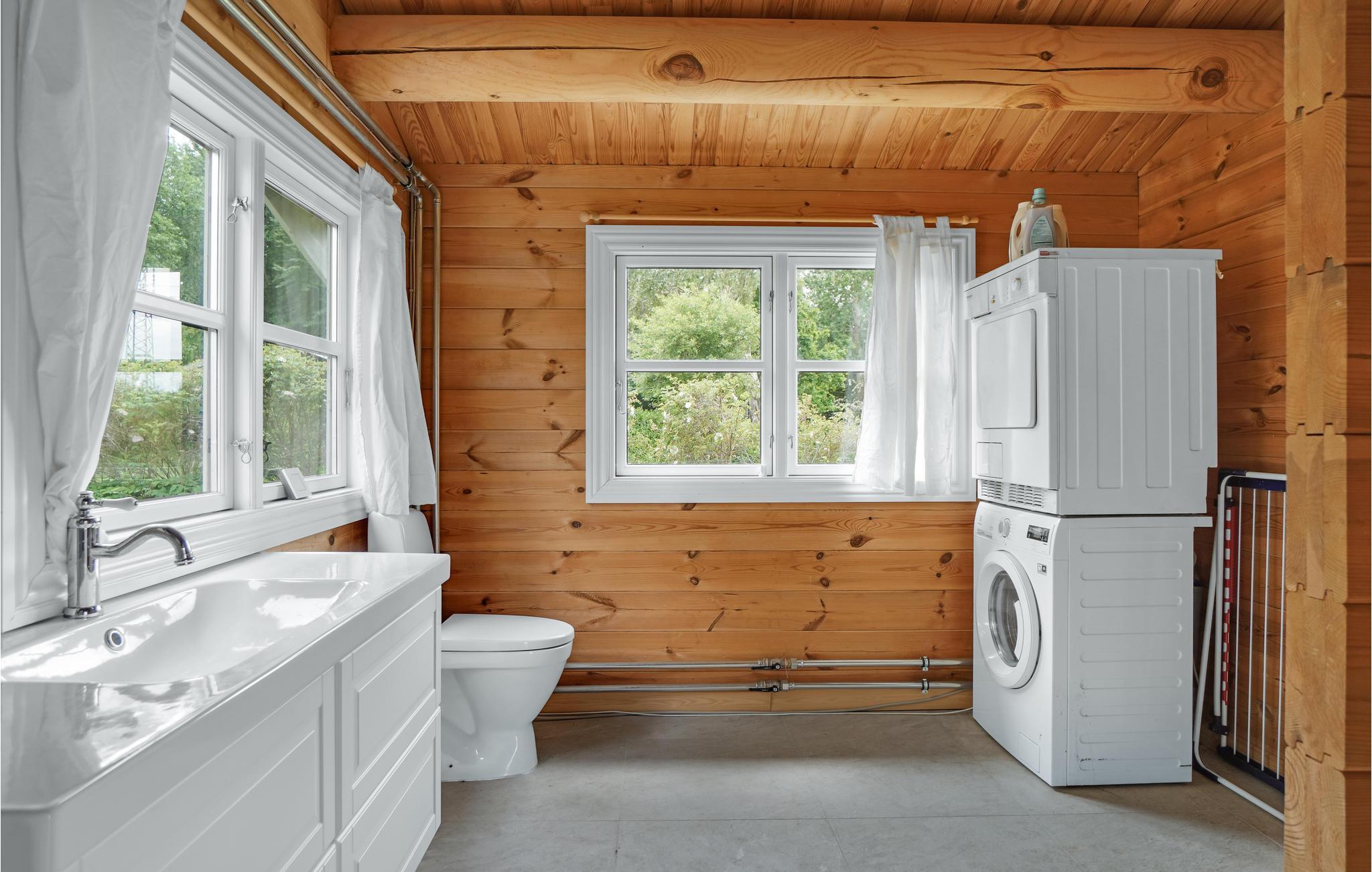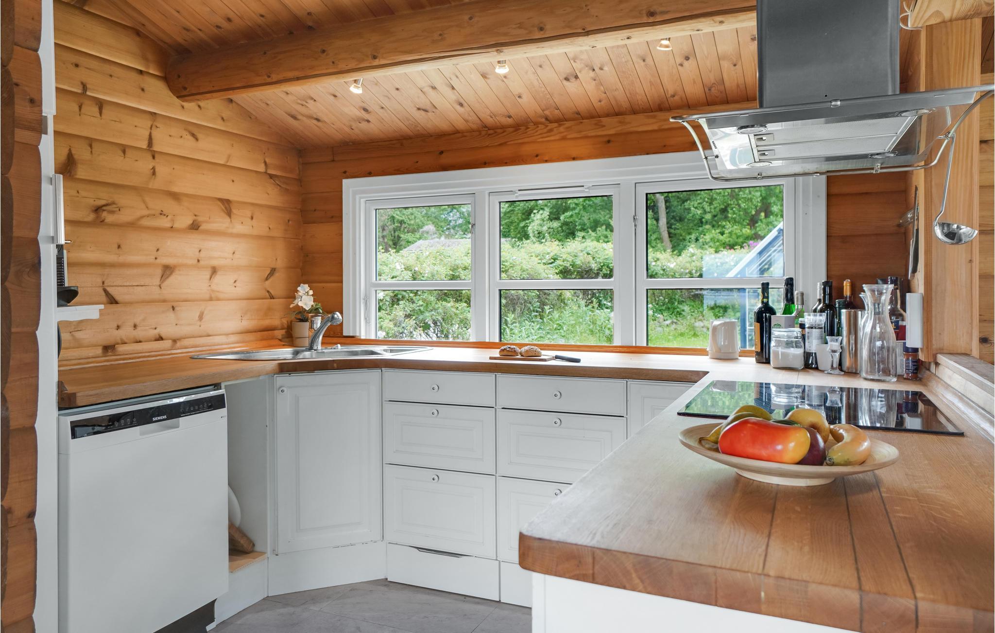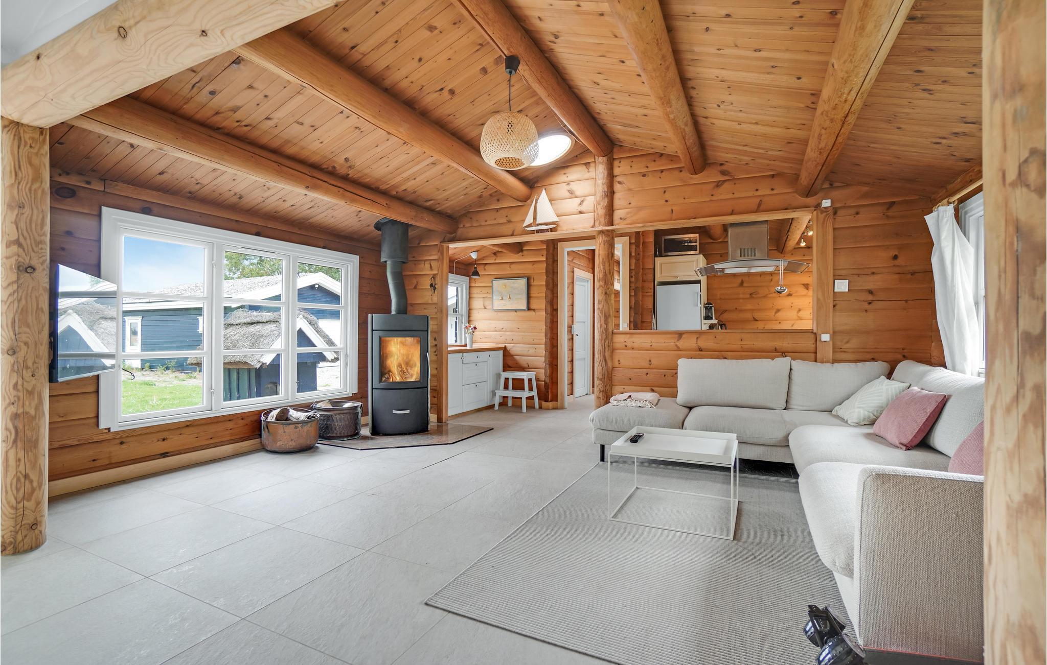 Nyd den helt særligt luksus ved at ligge i første række til fjorden. Dette hus har nemlig ikke kun en fantastisk udsigt - I får også en helt anden oplevelse af at kunne komme og gå til vandet, når I føler for det. Fra den skønne terrasse, som er udstyret med grill og havemøbler, træder I ind i opholdsrummet, der ligesom resten af huset har flotte, rå trævægge, hvilket skaber en skøn og stemningsfuld ramme om samværet. Huset har pæne, moderne faciliteter og er desuden udstyret med brændeovn og et billardbord, så der gode muligheder for at hygge sig indendørs på gråvejrsdage.