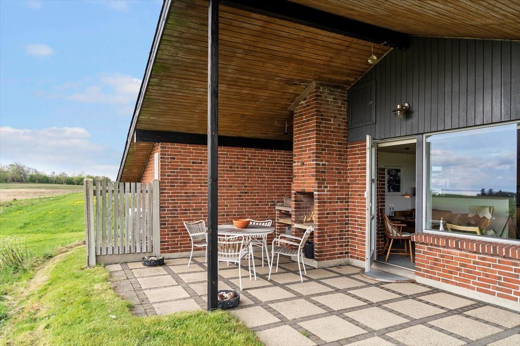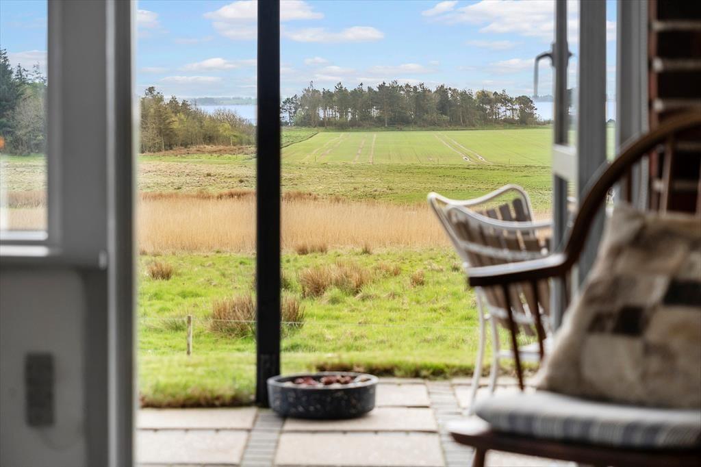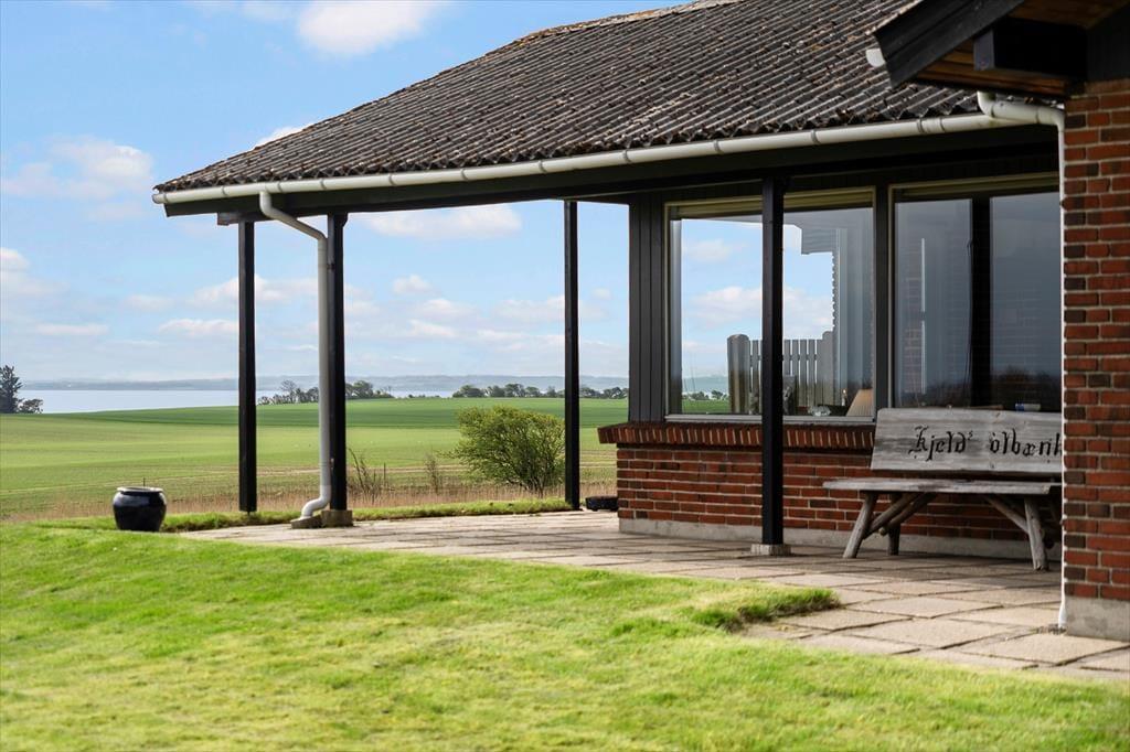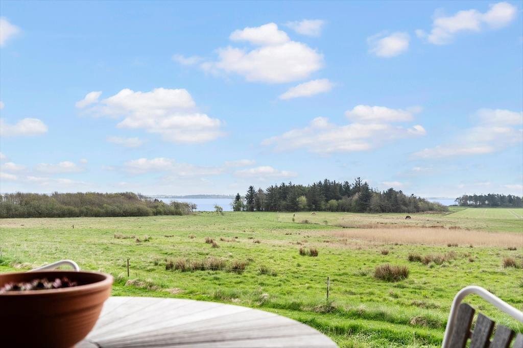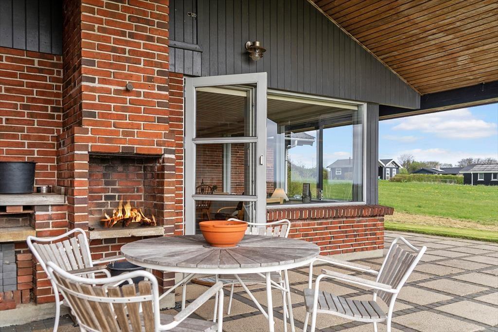 Udenfor venter en fantastisk terrasse, hvor du kan tilbringe utallige timer i solen, nyde måltider udendørs og slappe af med en drink i hånden. Den store terrasse byder både på sol og skygge, så du kan finde den helt rette plads alt efter humør og vejrforhold. Panoramaudsigten over landskabet gør det til et perfekt sted at starte morgenen med en kop kaffe, mens du ser solen stige op. Der er også rig mulighed for at tage på eventyr i naturen – gå en tur ned til stranden, som kun er 300 meter væk, eller slap af på græsplænen og lyt til fuglene, der synger i det omkringliggende landskab.