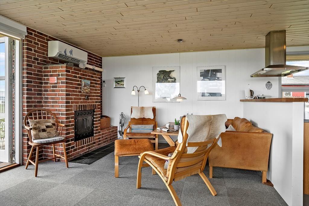 Træd indenfor i dette hyggelige sommerhus, hvor en varm atmosfære breder sig fra første skridt. Stuen er indrettet med et skønt sofahjørne, hvor du kan sidde foran pejsen og nyde varmen, mens du ser ud over de smukke omgivelser. Huset er perfekt til en afslappet ferie, hvor du kan tage den med ro, læse en god bog eller bare nyde stilheden. Med plads til seks personer og to husdyr, er der god mulighed for at samle familie og venner i et hjemligt og indbydende miljø. Køkkenet ligger åbent og giver en naturlig forbindelse til stuen, så du kan nyde fællesskabet, mens du forbereder måltiderne.