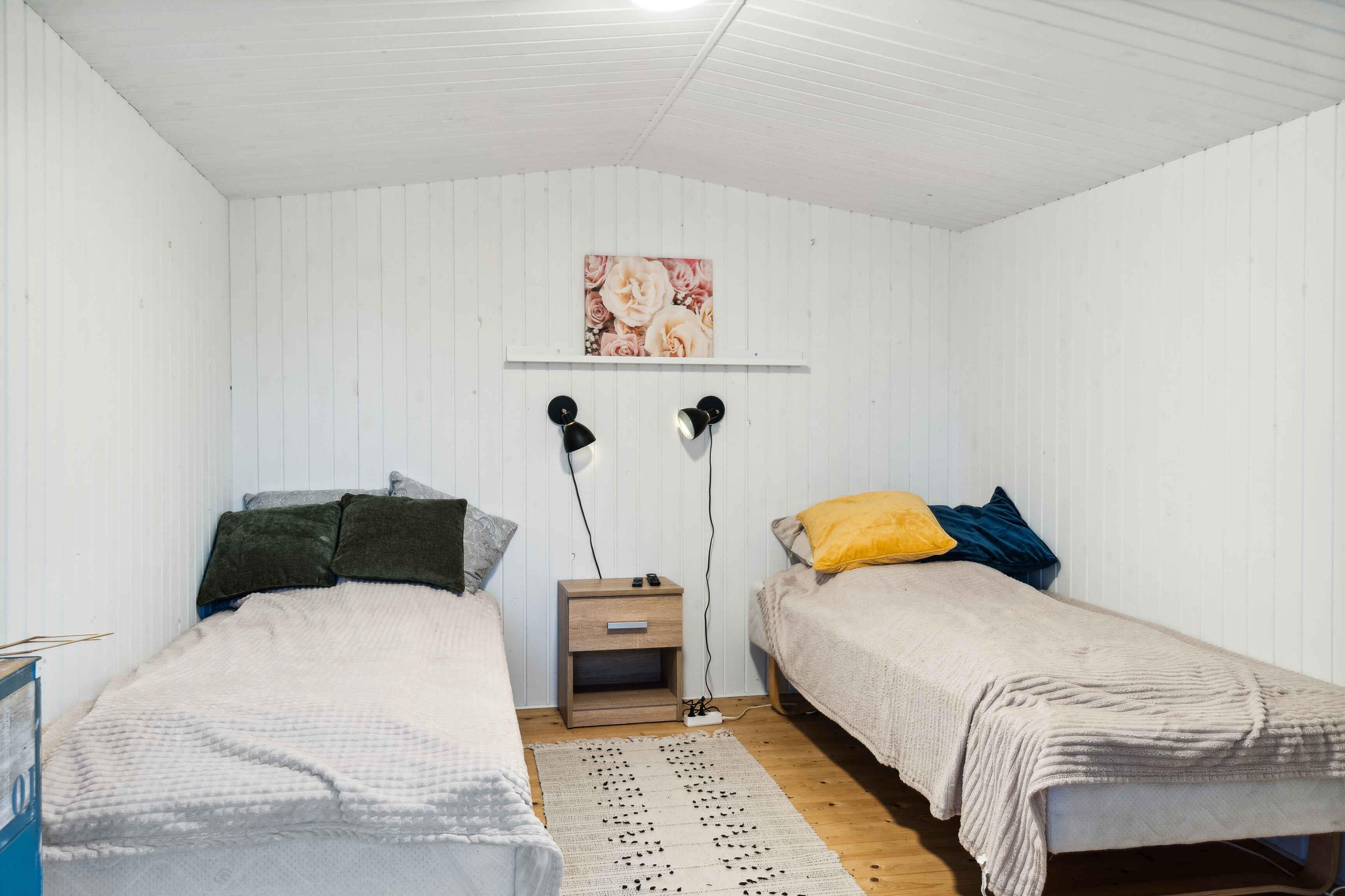 Denne rummelige feriebolig på 103 m² beliggende i det eftertragtede Stillinge Strand, byder på en afslappet ferieoplevelse tæt på naturen og med plads til hele familien. Her er plads til 6 personer fordelt på hovedhus og to separate annekser. Huset indeholder et stort soveværelse med tv, stue med brændeovn og tv og trin op til spisestue og åbent køkken. Stor, overdækket terrasse med havemøbler, grill og med indgang til separat bryggers med køleskab og indgang til husets store entre med bordfodbold. Begge annekser har en overdækket veranda med bord og stole. Hovedhuset har to komfortable sovepladser, mens hvert anneks tilbyder to ekstra sovepladser, perfekt til både voksne og børn. En luft-til-luft varmepumpe og en pillebrændeovn sikrer varme og hygge – husk selv at medbringe 6 mm træpiller. (VIGTIGT AT DET ER 6 MM, DA DET ER DE ENESTE DER VIRKER) Den store grund inviterer til udendørs aktiviteter med plads til leg og afslapning. Haven byder også på et kæmpeskakspil for sjove stunder under åben himmel. Der er kun 700 meter til vandet. For de eventyrlystne inkluderer boligen to paddleboards og svømmeveste i forskellige størrelser, så I kan udforske området fra vandet og få unikke ferieoplevelser. Området omkring ferieboligen er oplagt til både afslapning og aktiviteter. Kysten byder på smukke strande og gode muligheder for fiskeri eller kajakroning. Tæt ved finder I skovområder og stier til vandreture og cykling. Denne feriebolig egner sig til familier og voksne, der søger ro og samvær. Udlejes ikke til ungdomsgrupper.