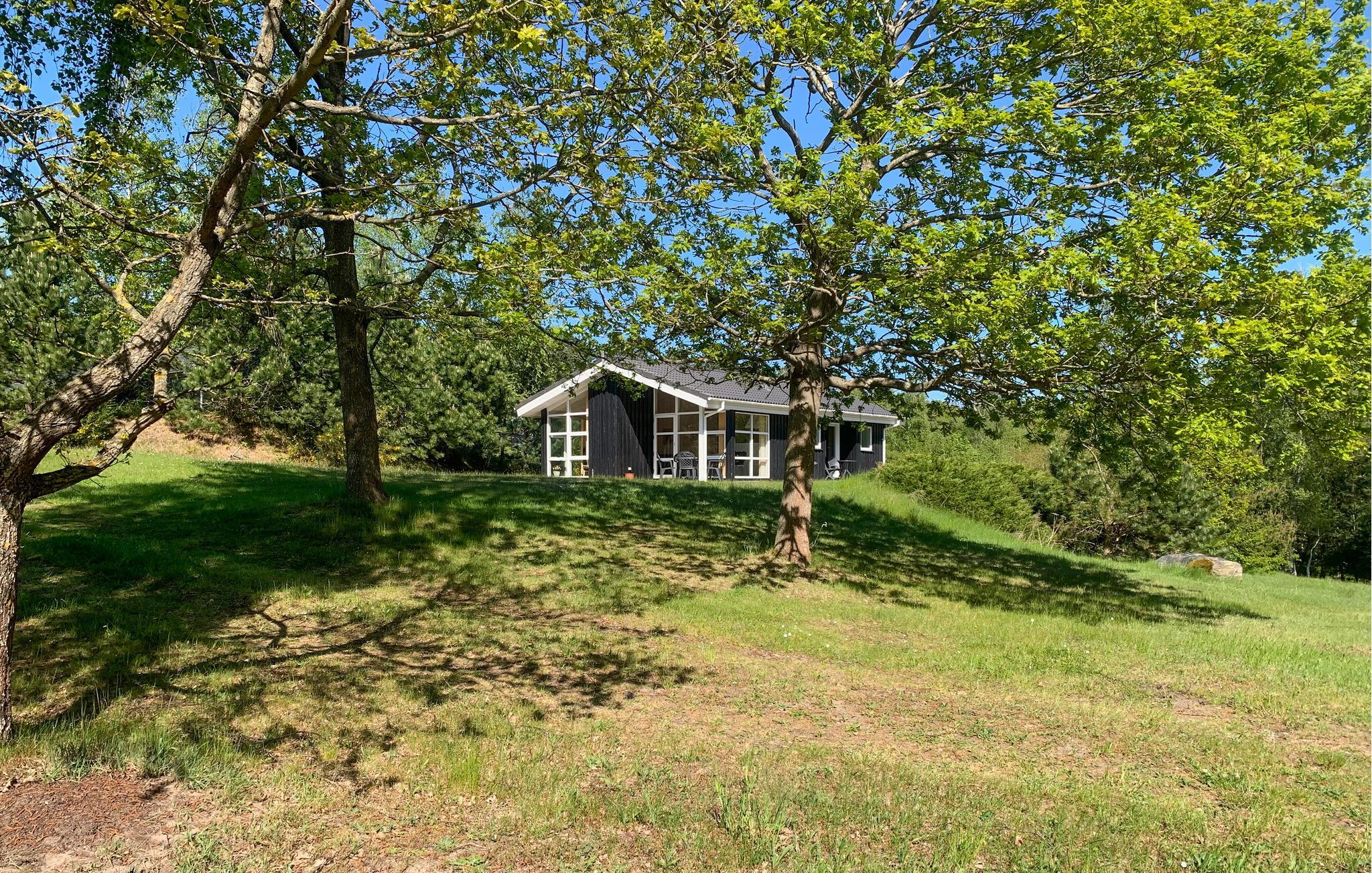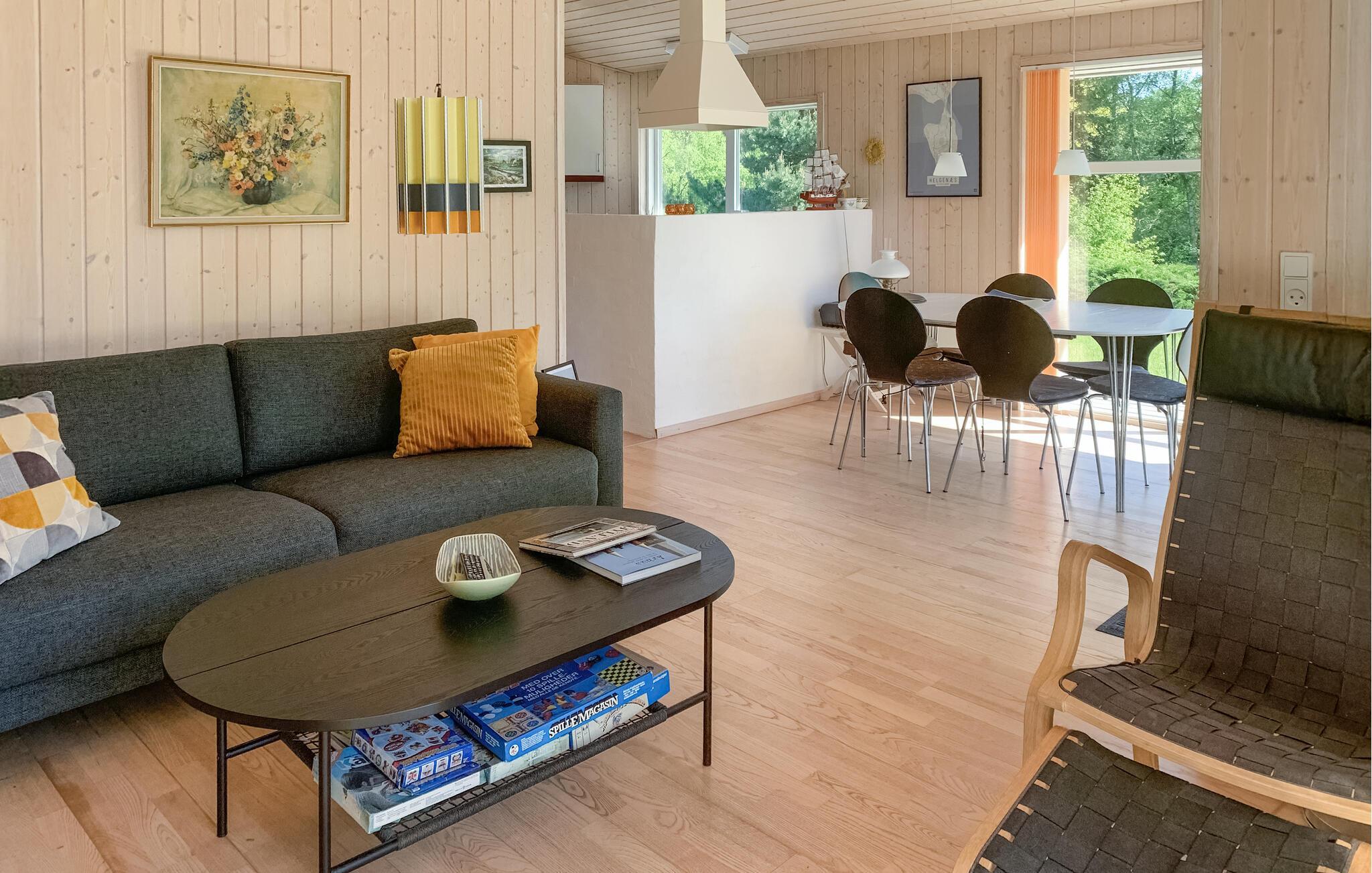Bliv budt velkommen af ??den lyse atmosfære i Dette feriehus, og mærk straks roen i dette særlige sted. Husets interiør er venligt og åbent. De store vinduer skaber en særlig forbindelse mellem inde og ude, hvilket lukker masser af naturskønt lys ind. Slap af i den hyggelige opholdsstue, læs en bog eller se en film sammen. Spisebordet med udsigt over de grønne omgivelser er et vidunderligt sted at spise. Det åbne køkken tilbereder alle retter, uanset om det er til morgenmad på terrassen eller aftensmad med havudsigt.