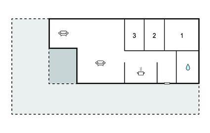 Badeværelse (nr. 1) - WC. Varmt og koldt vand. Bruser