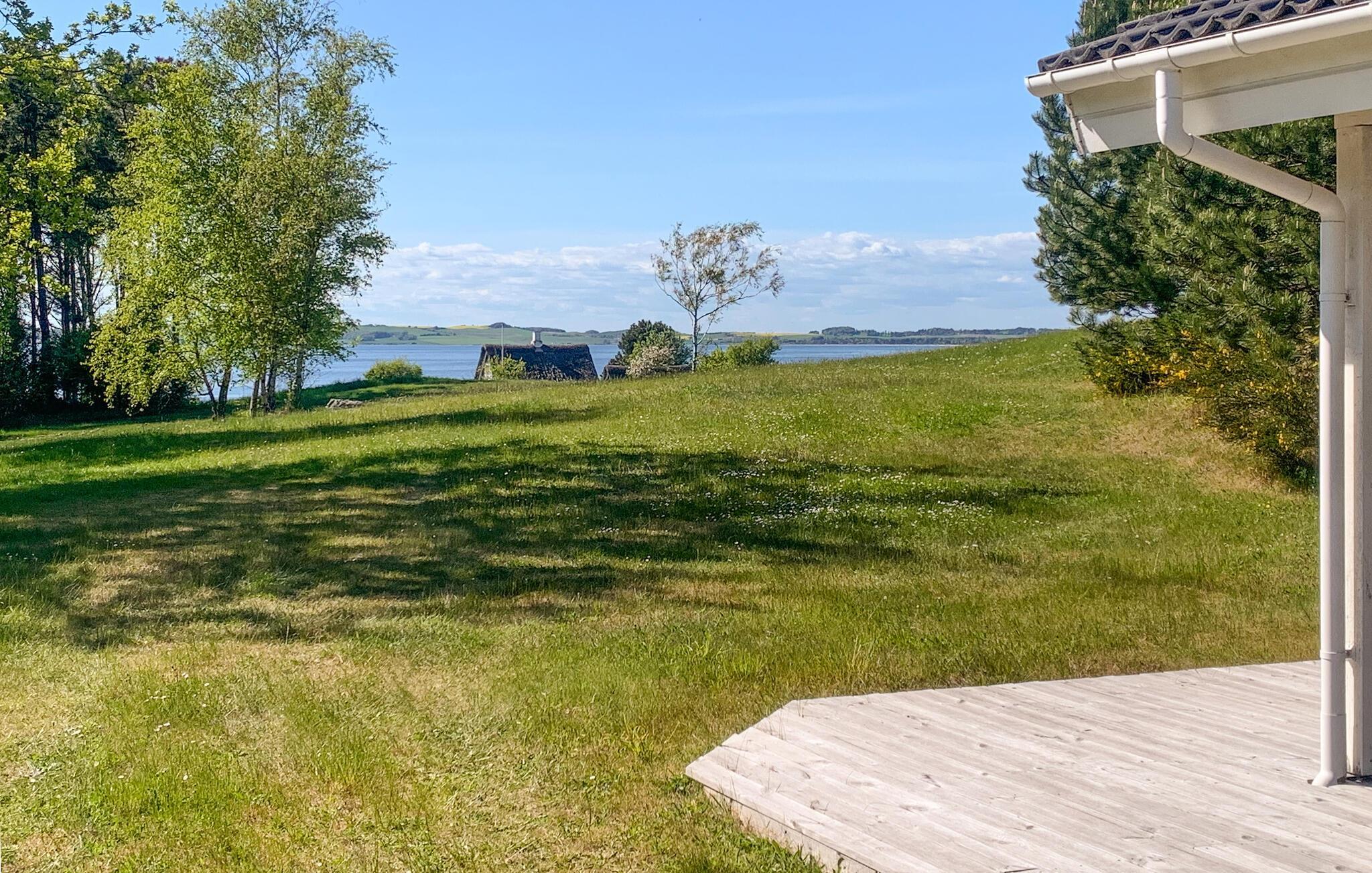 Træd ud på den store træterrasse og nyd den beskyttede beliggenhed på den vidtstrakte naturgrund. Tag plads på stolene, lyt til vinden i træerne, og lad blikket vandre hele vejen til kysten. Græsplænen byder på masser af plads til børnenes leg.