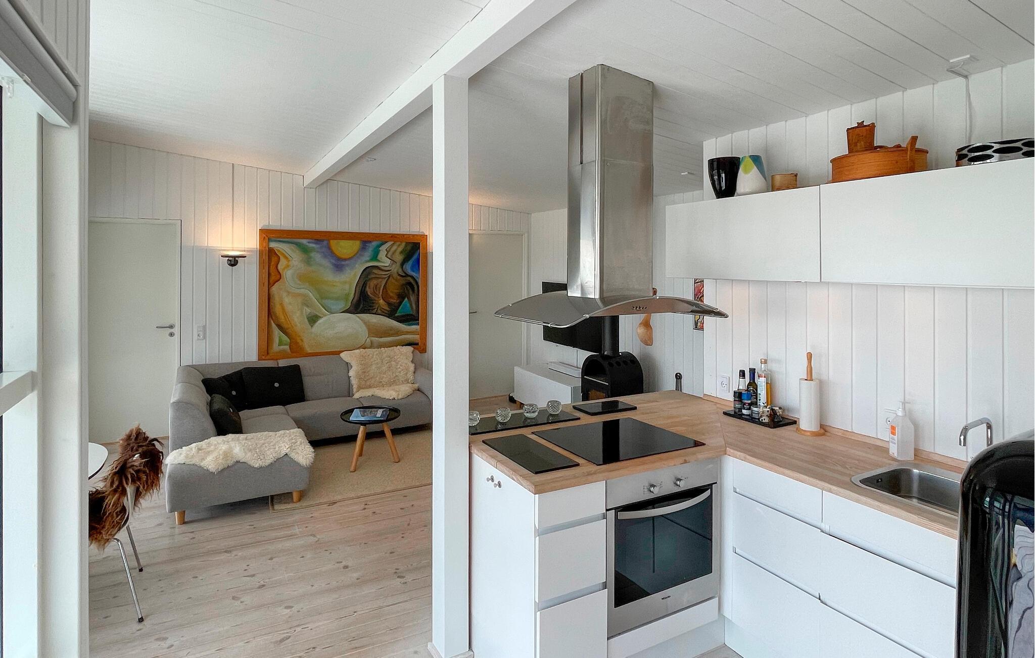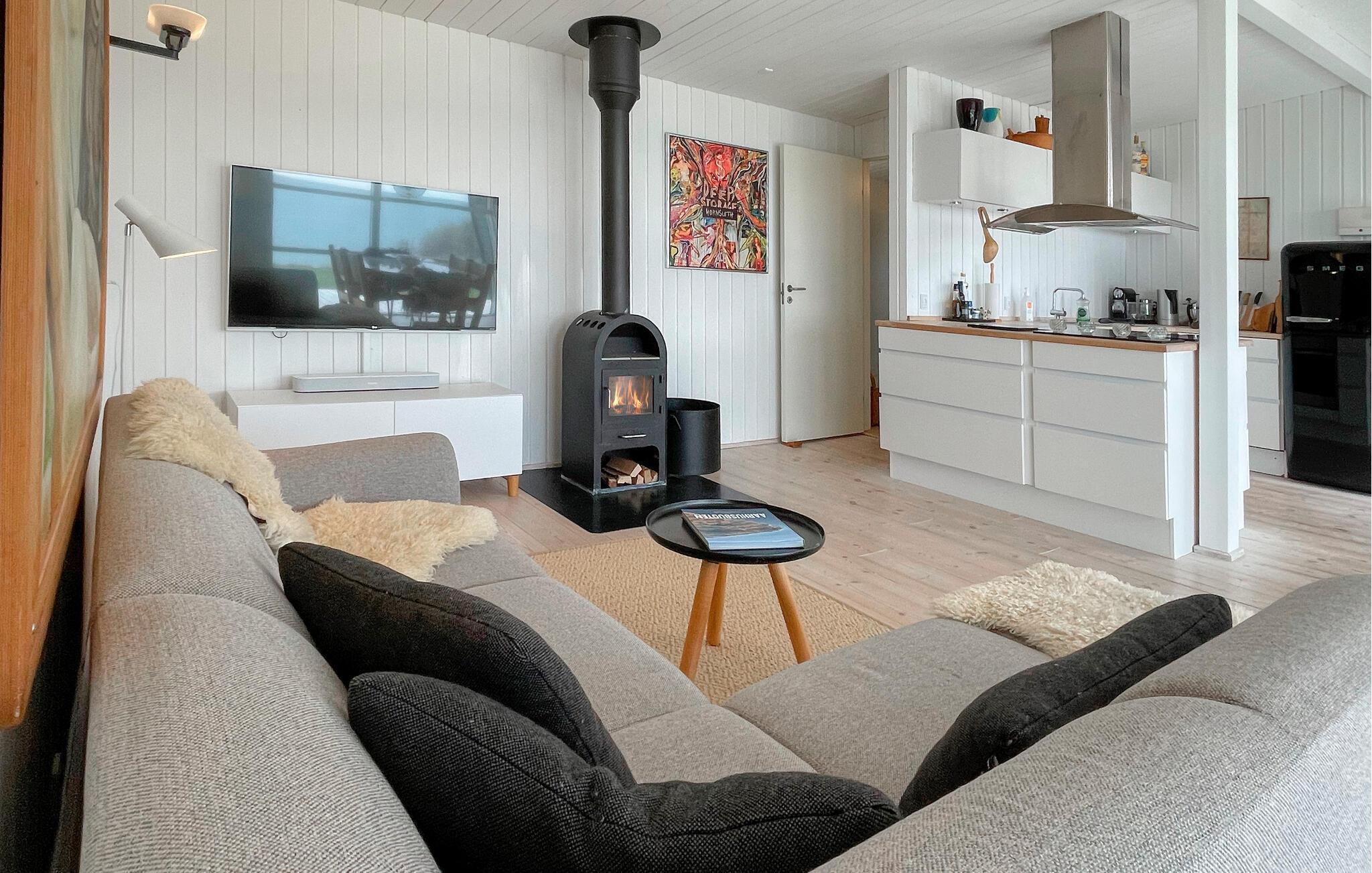 Fordyb jer i den stilfulde stemning i det moderne interiør, som venter jer med et fuldt udstyret køkken, en indbydende spiseplads og en hyggelig stue. Nyd afslappende timer foran pejsen, bliv inspireret af den store vinduesfront med udsigt over havet eller tilbring hyggelige aftener med familie og venner.