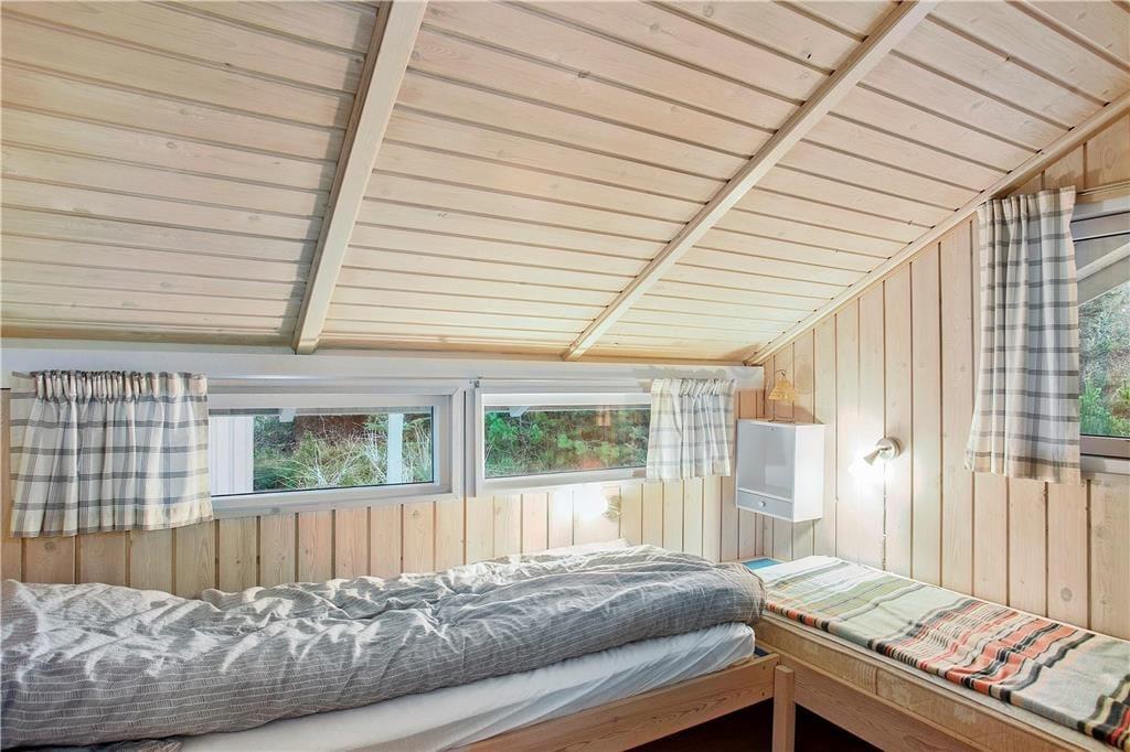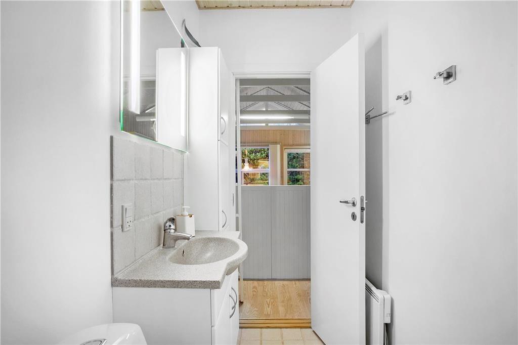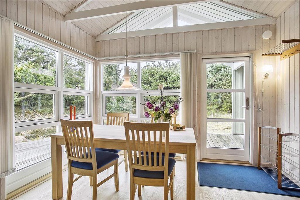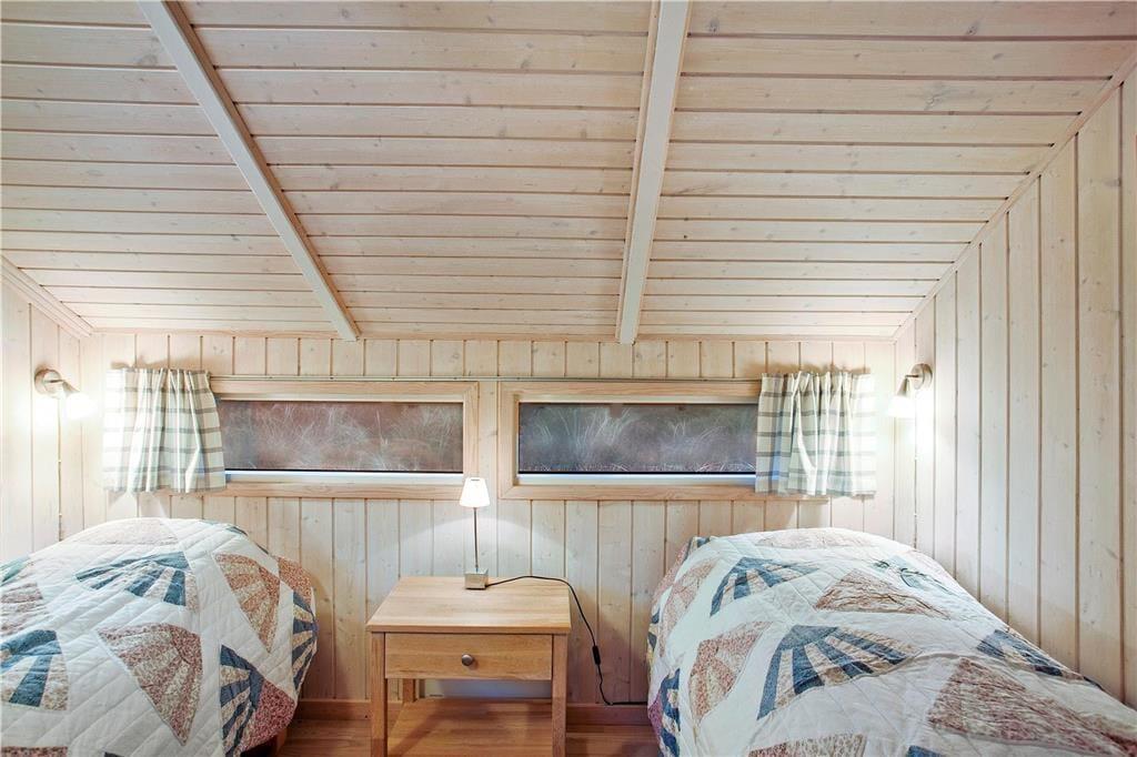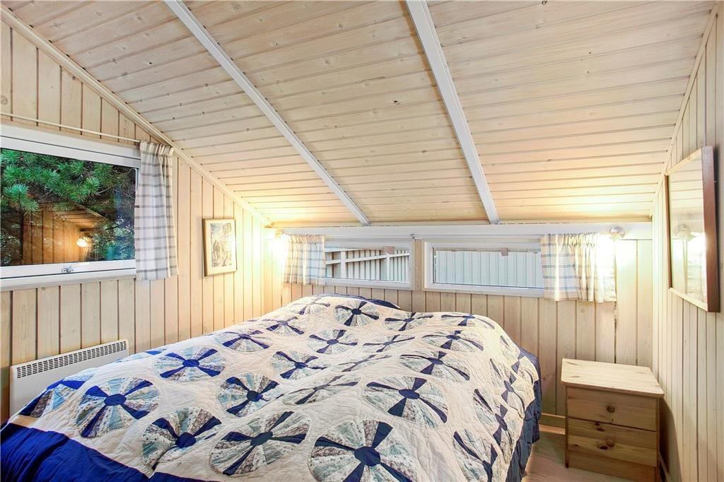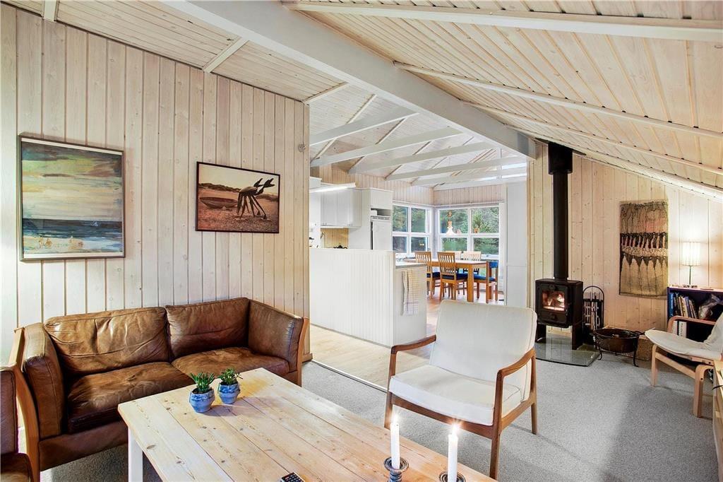 Inden døre i sommerhuset er atmosfæren lys og indbydende, og man kan tydeligt se, at rummene er blevet pænt vedligeholdt og opdateret siden opførelsen i 1982. Køkkenet er rummeligt, indeholder opvaskemaskine og ligger på velfungerende vis i åben forbindelse med både spisepladsen i den ene ende af huset og stuen i den anden. Selve stuen byder på behagelige møbler, hygge fra brændeovnen og mulighed for at streame TV fra egne abonnementer til fladskærmens tilsluttede Chromecast. Når det er ved at være sengetid, kan I lige runde badeværelset for at børste tænder, inden I går til ro på de tre gode soveværelser.