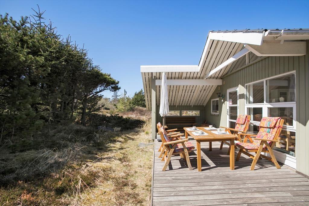 Skinner sommersolen, når I vågner op til endnu en feriedag, kan I glæde jer til at komme ud i det fri lige fra morgenstunden – og der er ligefrem en udendørs bruser på den 1254 m2 store naturgrund, så selv morgenbadet kan foregå under åben himmel. På den østvendte terrasseafdeling kan I dække op til brunch og læse avisen, og senere på dagen kan I følge med solen og rykke driverlivet hen på det store, sydvendte terrasseområde. En del af terrassen er overdækket og afskærmet, så her er der både ly og læ, hvis det skulle blive nødvendigt.