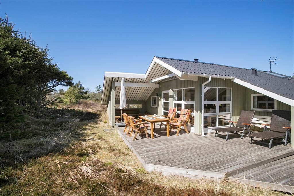 Solbeskinnet afslapning på terrassen og hyggestunder nær brændeovnen kan oplagt blive del af ferien, når I tilbringer den i dette skønne sommerhus i Slettestrand. En spadseretur langs med kysten og en dukkert i Vesterhavet kan også inkluderes i det daglige ferieprogram, for I bor blot 550 meter fra den smukke strand.