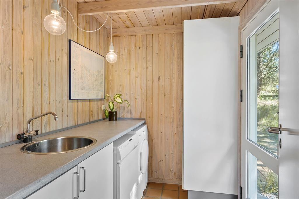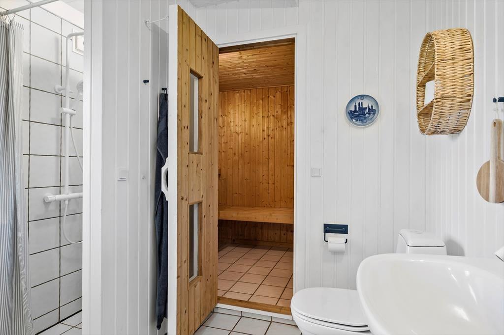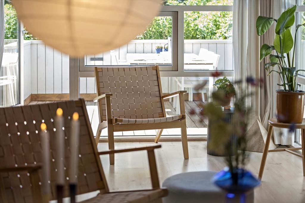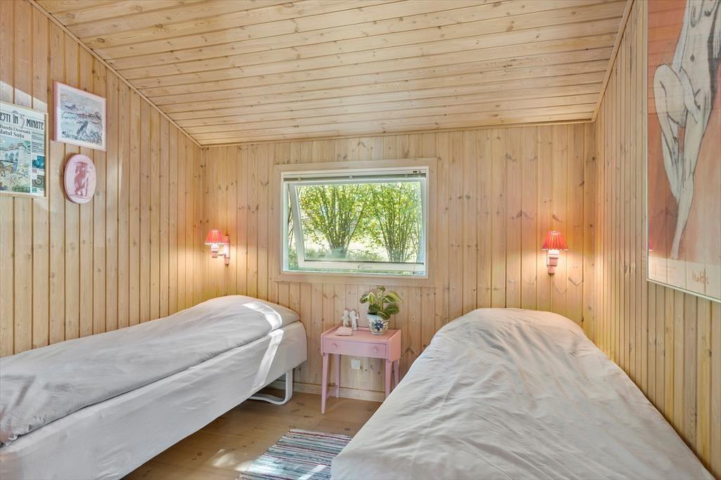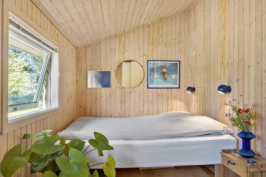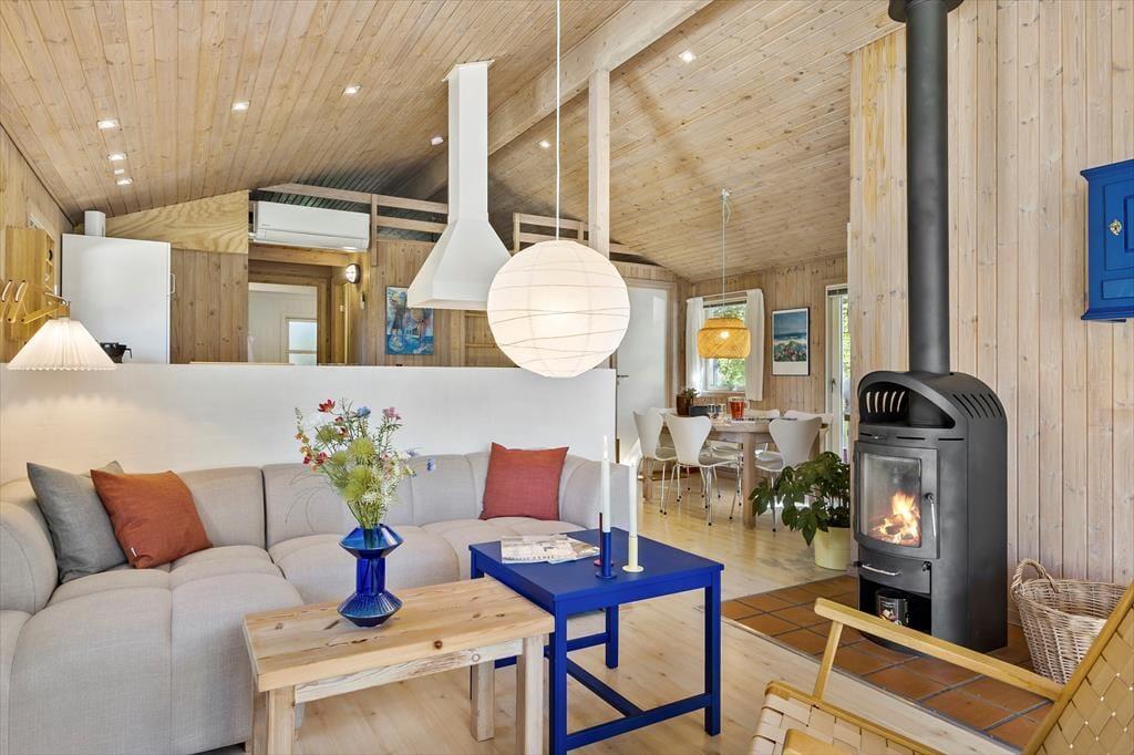 På de dage, hvor du er mest i humør til indendørs hygge og total afslapning, er det skønt at have et spabad og en sauna på badeværelset. Stuens brændeovn kan sikkert også vække glæde, for der er skruet helt op for sommerhuscharmen og den gode stemning, når du sidder i en sofa med udsigt til de dansende flammer. Løber du tør for kaffe, kan du brygge mere af den varme drik i det åbne og veludstyrede køkken, og her kan du selvfølgelig også trylle de lækreste retter frem, når det er ved at være spisetid. På de tre soveværelser er der sengepladser nok, så seks personer kan sove komfortabelt.