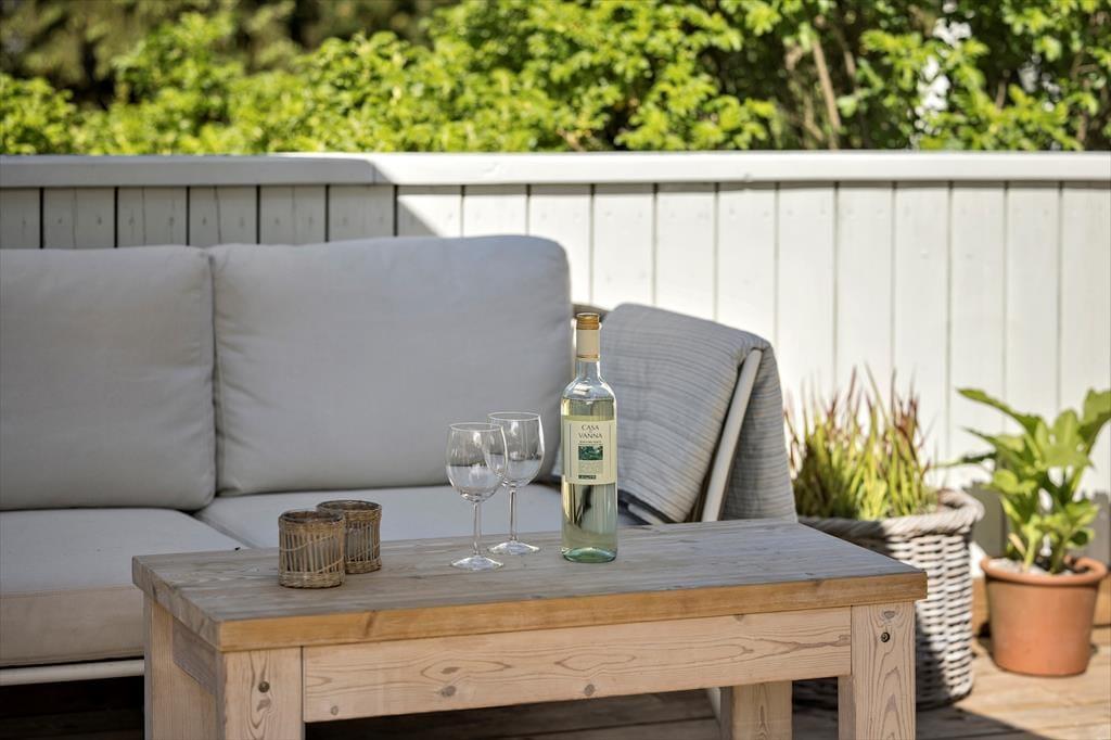 På den 1102 m2 store naturgrund er der skønt at være – uanset om I nyder det gode vejr med at gynge og lege i sandkassen, eller om I slapper af på terrassen med udsigt til hybenbuskene og de høje fyrretræer. Der er terrassearealer både mod øst og sydvest, så der er en god chance for at finde en dejlig opholdsplads i solen, og hvis du har lyst til at tilberede aftensmaden i det fri, er der en grill til rådighed. Mens fuglene synger deres aftensang, og solen langsomt forsvinder bag trætoppene, kan I nyde stilheden eller begynde at planlægge, hvad den kommende feriedag skal bruges på.