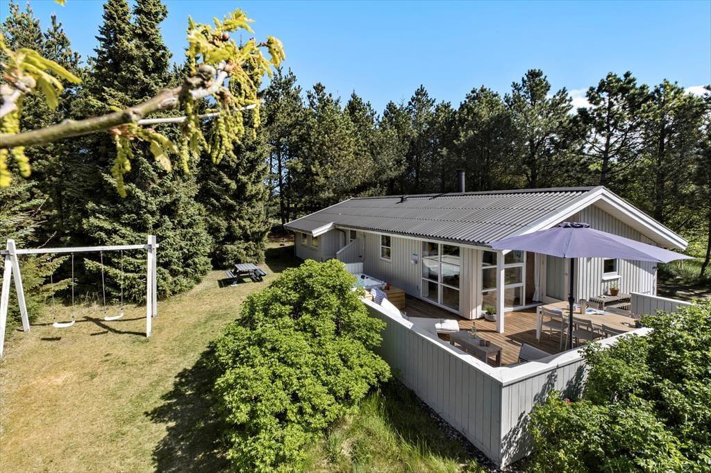Hvis du drømmer om at fylde ferien med tilbagelænede hyggestunder, wellness og sjove aktiviteter i naturen, har du kig på det helt rette sommerhus. Her på Stenhusvej 30 er der nemlig inde- og udespa, sauna og mange andre dejlige detaljer inden døre, og både skov og strand er i nærheden, for huset ligger nærmest som nabo til Svinkløv Plantage og knap en kilometer fra det brusende Vesterhav.