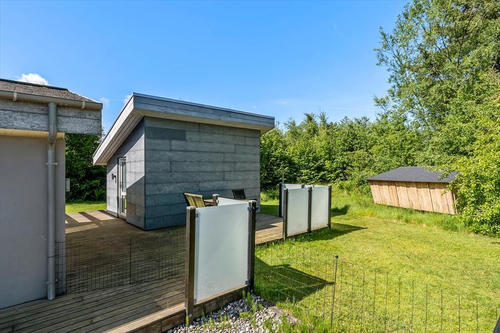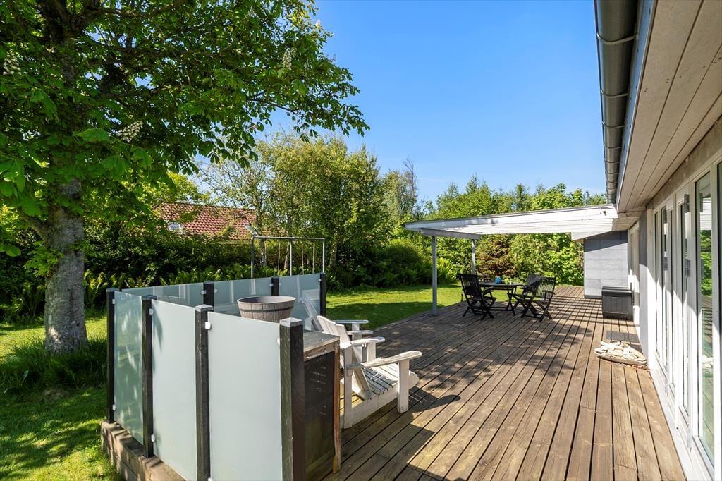 Udenfor venter en fuldt indhegnet have – perfekt til børn eller små firbenede gæster – som giver tryghed og frihed til at nyde den friske luft. Terrassen er ideel til grill og afslapning, og den korte vej på blot 500 meter til stranden betyder, at du hurtigt kan gå fra terrasse til klit og sand. En skøn ramme for ægte dansk sommerhus idyl.