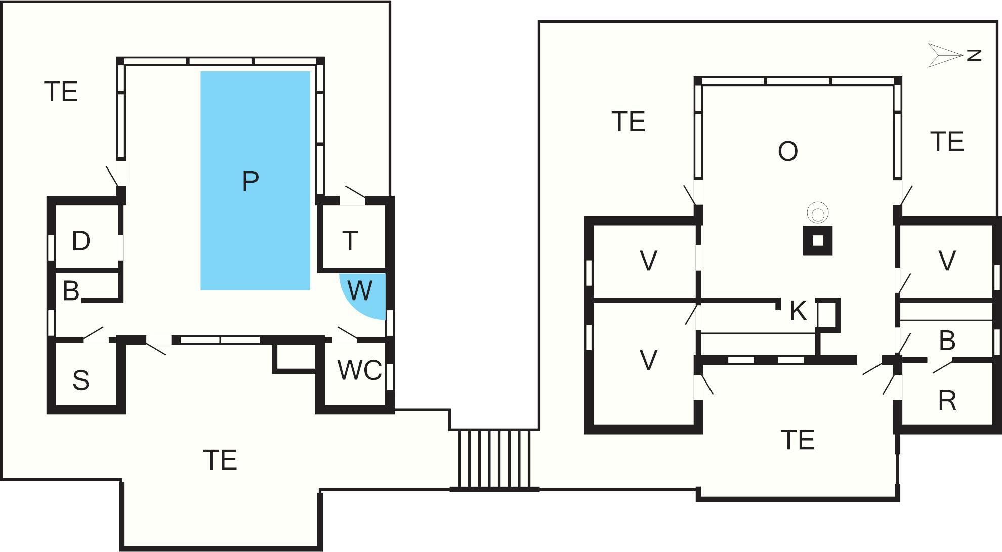 Sommerhuset består af to separate bygninger med terrasser langs begge bygninger. I den ene bygning finder I swimmingpool, spabad samt sauna. Poolen og gulvet i poolafdelingen er opvarmet via jordvarme. I poolhuset findes også mulighed for at spille bordfodbold og udendørs finder I bordtennis.