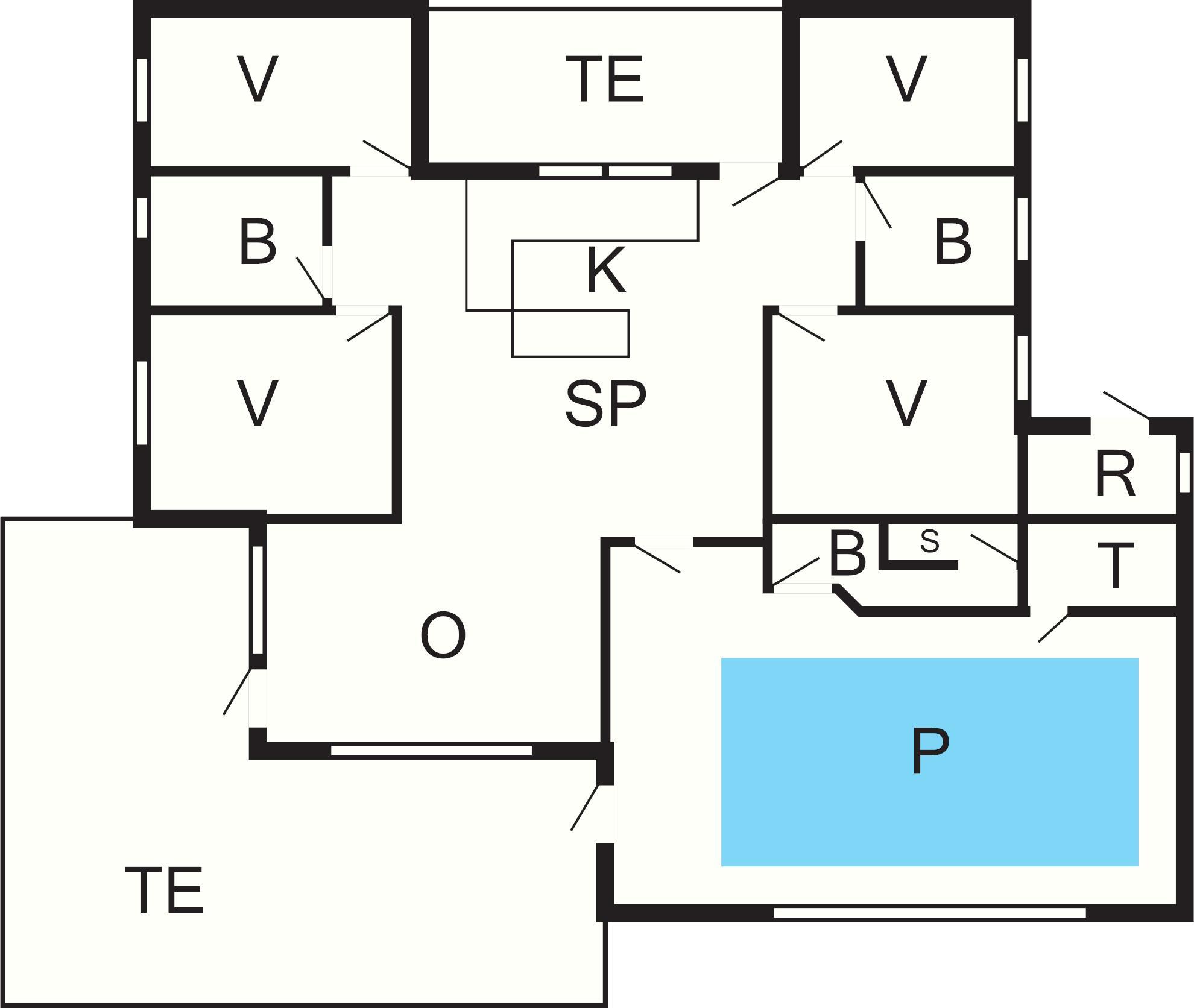 4 Soveværelser: (1DS)+(1DS)+(2S)+(2S)