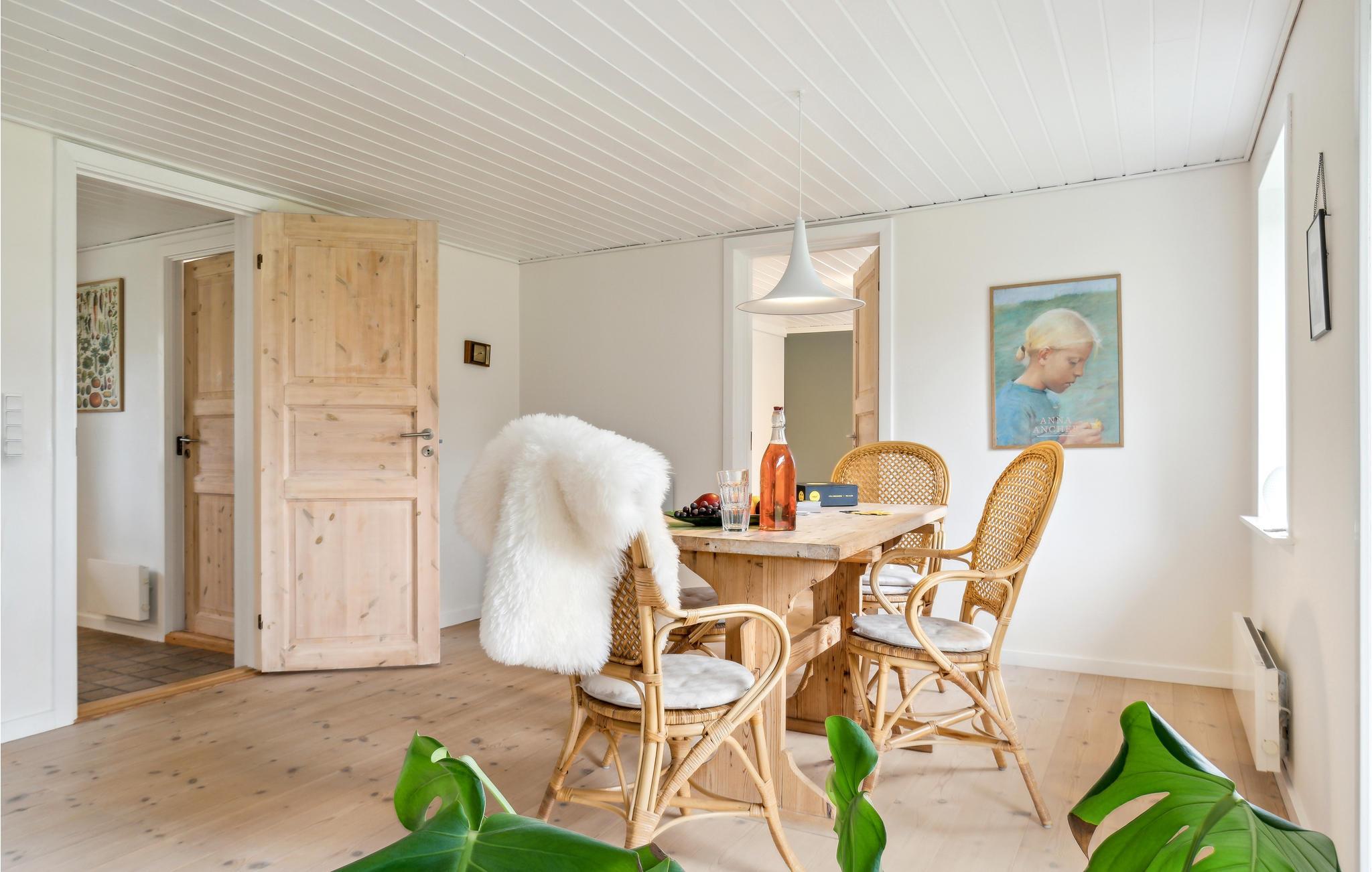 Tag til Slettestrand og træd ind i det dejlige og komfortable feriehus. Med sit flotte trægulv, store vinduer og velholdte møbler udstråler huset en atmosfære af velvære. Læn jer tilbage i den store sofa og kig ud gennem vinduerne på det smukke landskab eller fremtryl lækre måltider med dem, I holder af, i køkkenet. Tilbring de solrige timer på terrassen eller leg i haven og læg planer for jeres udflugter og aktiviteter.