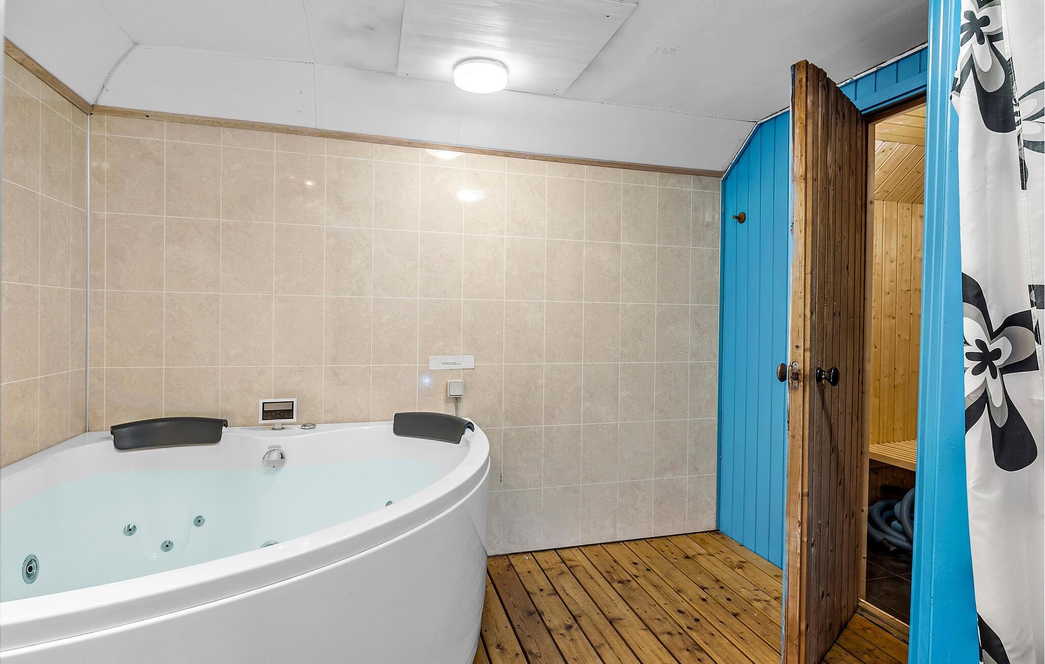 Noget af det bedste ved dette sommerhus er jeres helt eget wellnessområde med pool, spabad og sauna, som garanterer ren hvile og afslapning. Nyd kontrasten til hverdagen og forkæl jer selv med beroligende øjeblikke i det varme vand eller sæt jer til rette i saunaen efter en aktiv dag.