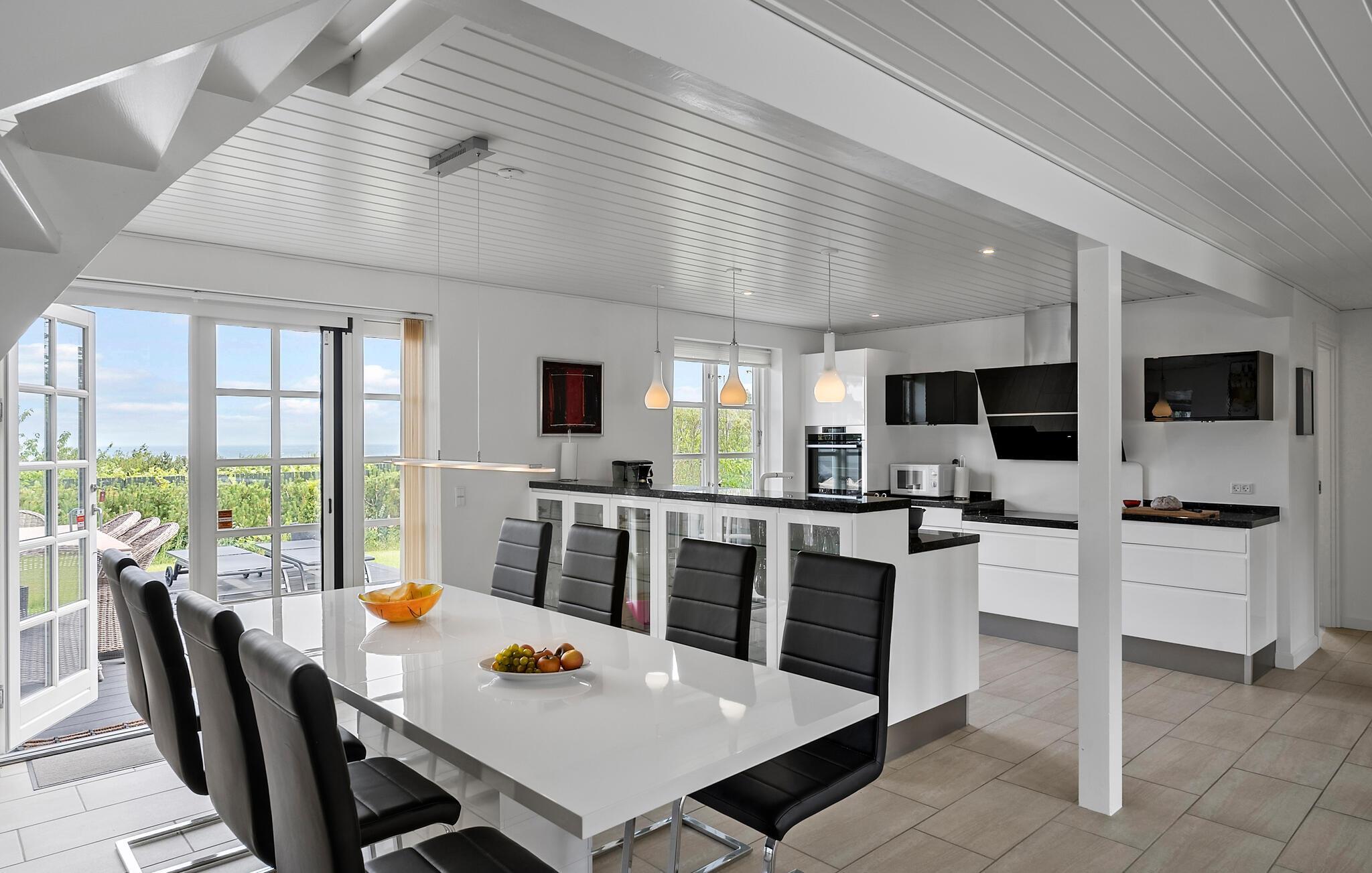 Oplev luksus i et stråtækt feriehus med panoramaudsigt over Jammerbugten og moderne faciliteter.