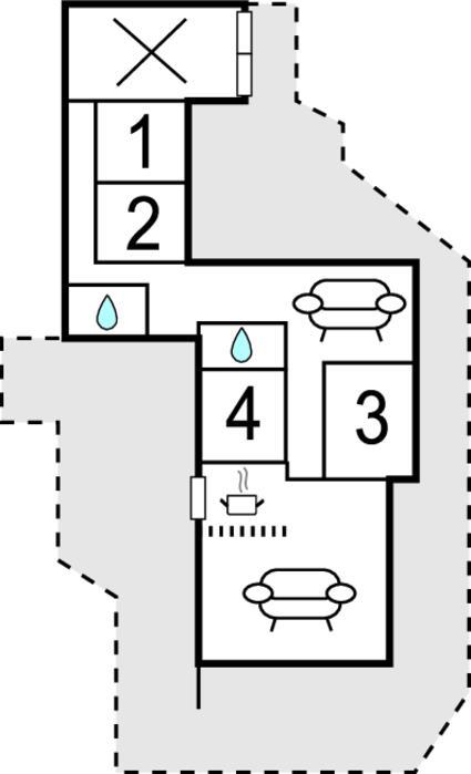 Badeværelse 5m2 (nr. 1) - WC. Varmt og koldt vand. Bruser