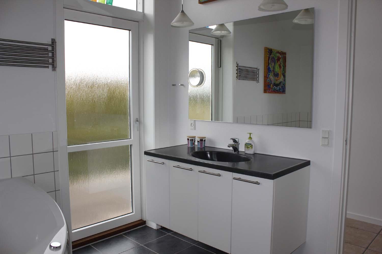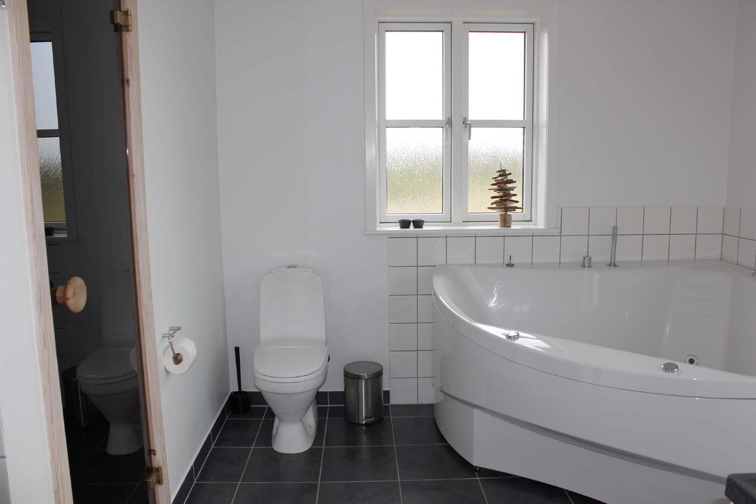 Huset har to badeværelser, hvor af den ene har ekstra udstyr i form af spabad og sauna. Derudover er her 3 soveværelser, alle med dobbeltsenge.
