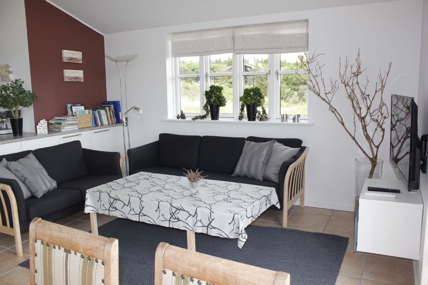 Dette hus er skønt med sine moderne møbler og udsmykning med hyggelige billeder og brugskunst, som passer perfekt til huset placering tæt på havet.