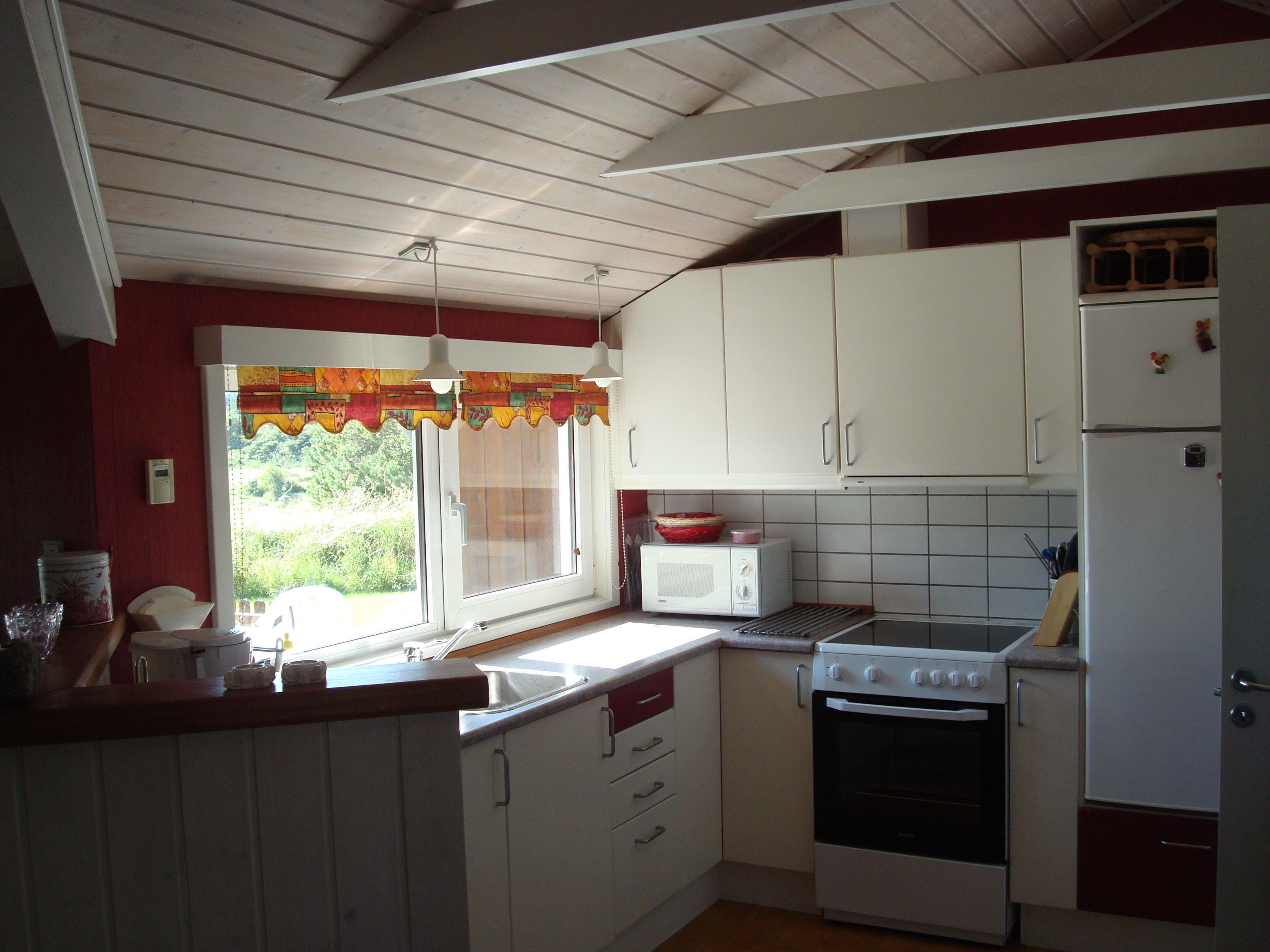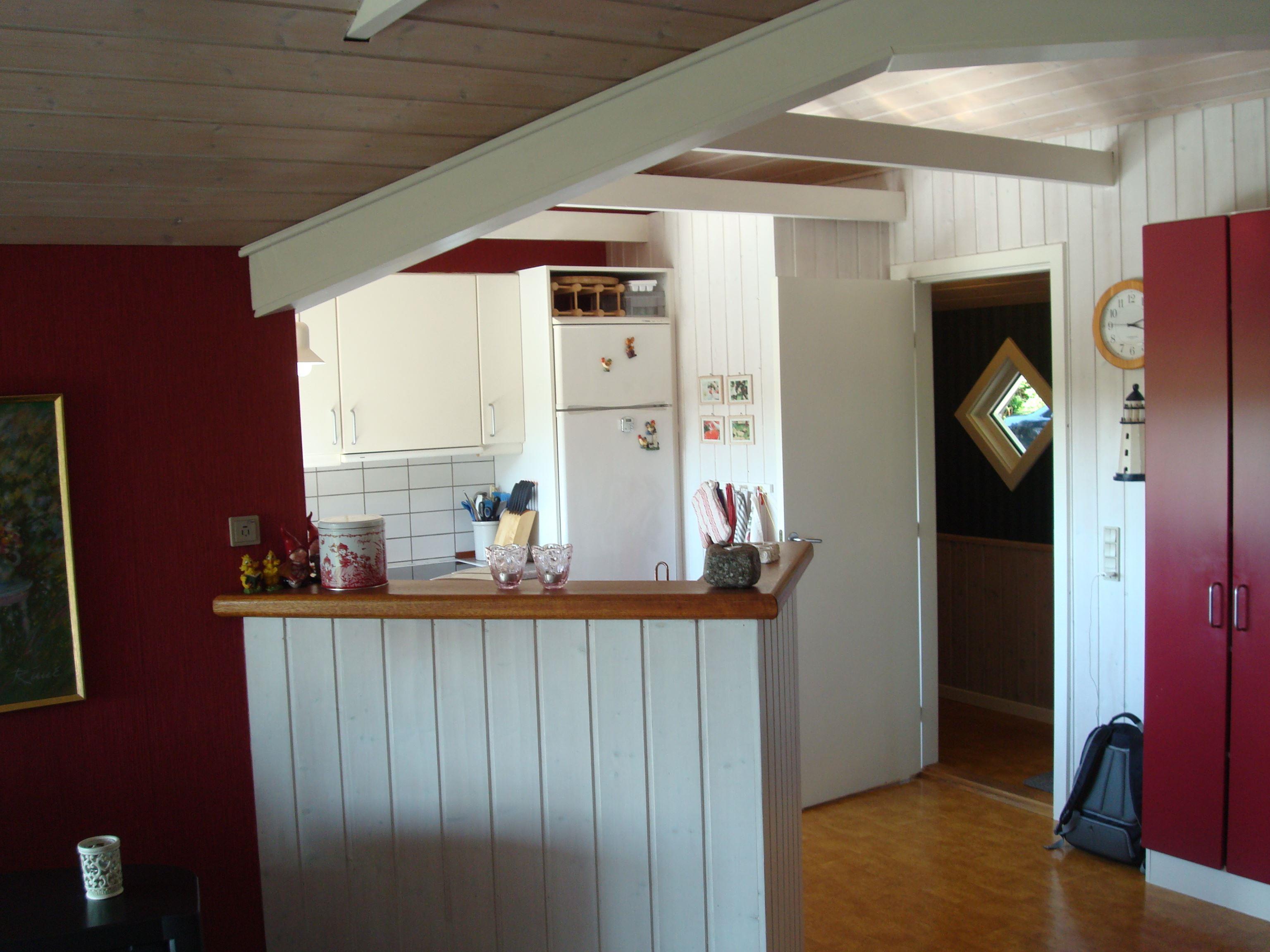 Smukt, hyggeligt og MEGET velholdt sommerhus med storslået udsigt over det kuperede landskab. Huset er bygget i U-form og yder således dejlig læ for vinden, dels når man sidder på den delvis overdækkede terrasse eller fremme i den åbne del. Fra den hyggelige stue, hvor der er trægulv, BRÆNDEOVN, TV m/parabol og 25 kanaler fra stofa. Der er såvel fra spiseafdelingen som sofaen en virkelig SMUK UDSIGT over grunden og de åbne vidder. I det øvrigt meget veludstyrede køkken er der bl.a. OPVASKEMASKINE, microovn, køleskab m/god frysekapacitet. Der er 2 store soveværelser, hvoraf 1 med db. seng (180x200), 1 med 3/4 seng (140x200) og et vær. med 2 overkøjer (70x200) samt en 3/4 seng. Huset har INTERNET, SAUNA, SPA VASKEMASKINE og bruser.- i særskilt rum er toilet og håndvask. - Gulvvarme i badeværelsene. Til terrassen hører: bord, 8 stole, 3 pos. stole, bænk, parasol og grill. - - ligesom der er tænkt på børnerne med SANDKASSE & GYNGER. Dette hus udlejes ikke ungdomsgrupper.