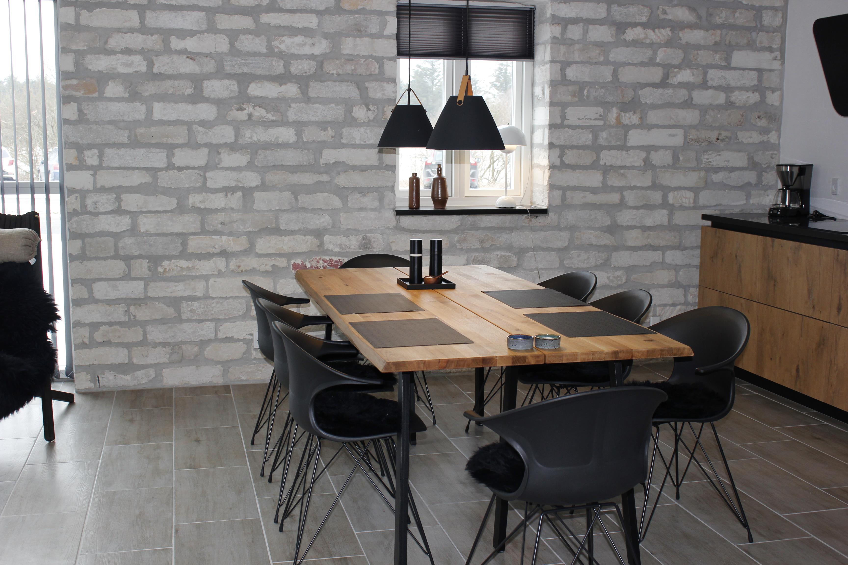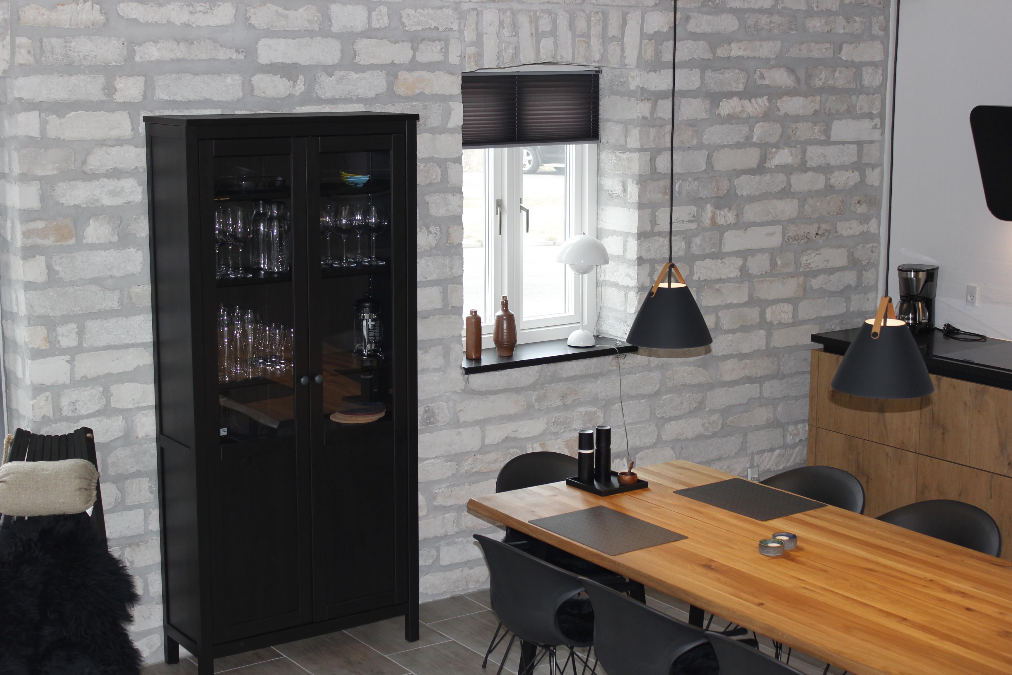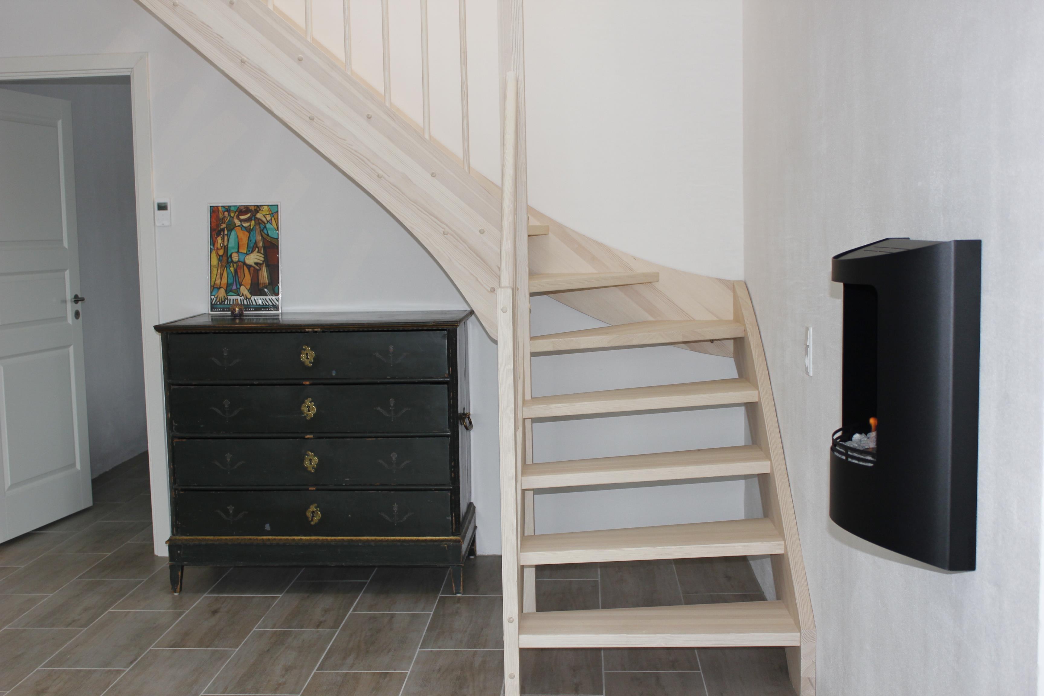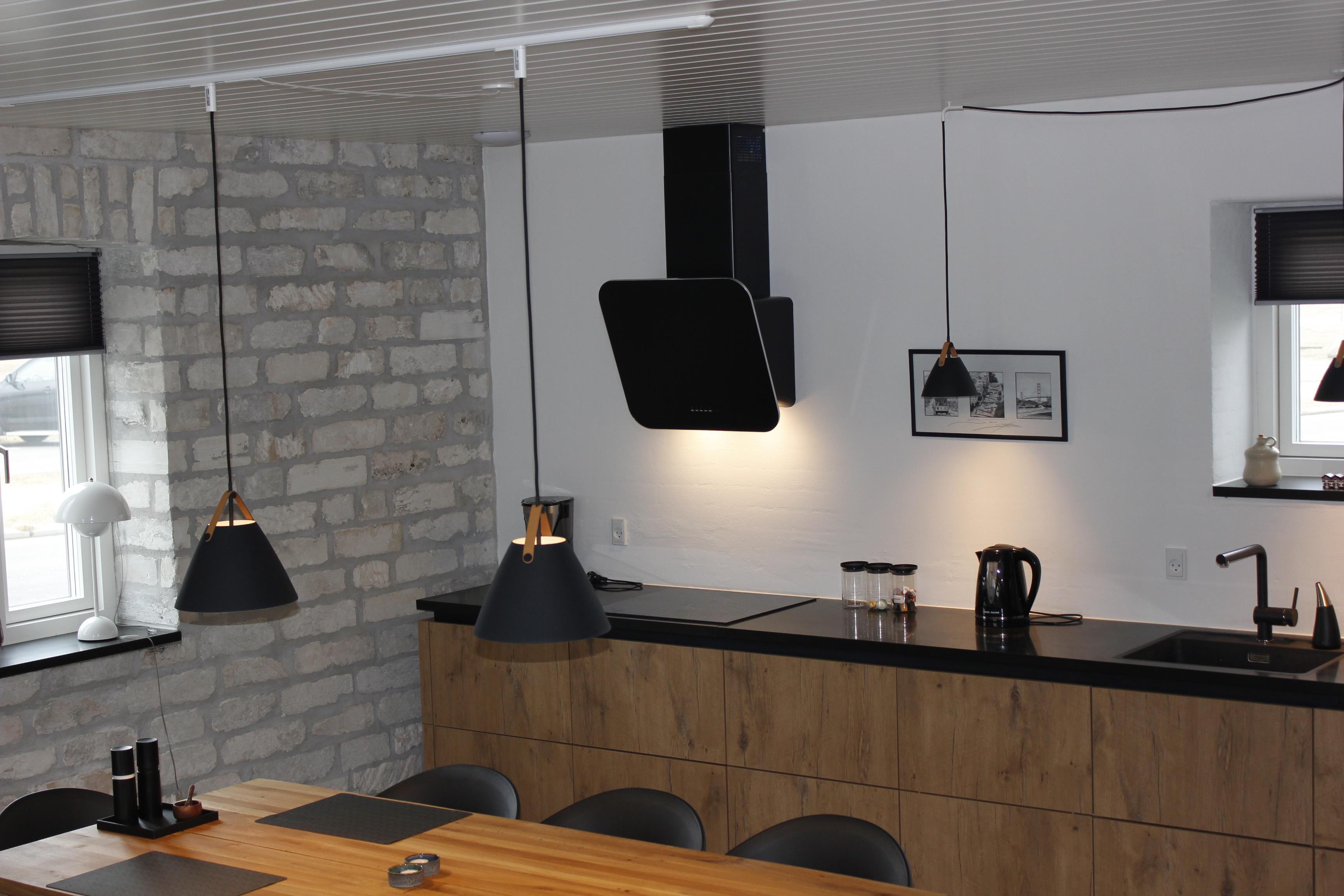 Dette dejlige hus, som er bygget i 2017 -- har, i stueplan, moderne køkken med alle faciliteter. Der er soveværelse med dobbeltseng (180 x 200), - dejligt badeværelse. Overalt i stueplan er der gulvvarme (som leveres centralt) Herudover er der for hyggens skyld en bio-ethanol ovn. På 1.salen er der også et soveværelse med dobbeltseng (160 x 200) og ligeledes her et badeværelse. I stuen på 1. salen er foruden det lækre sofaarrangement en luksus sovesofa (til 2 personer).