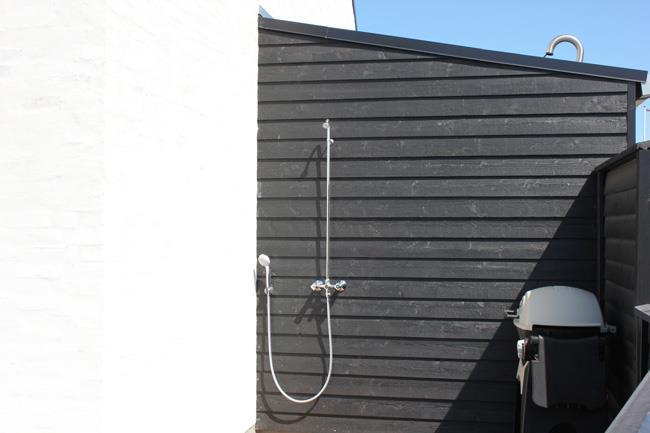 Til mountainbikes (og cykler iøvrigt) er der et aflåseligt skur + vaskeplads, - - - til de friske, er der også tænkt på udebrus :-)