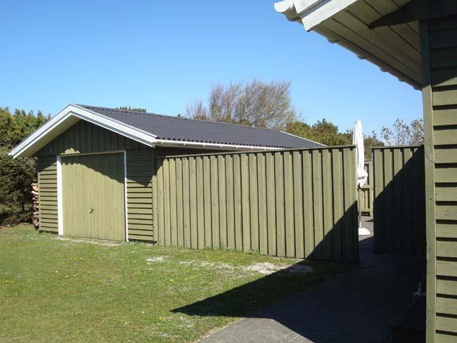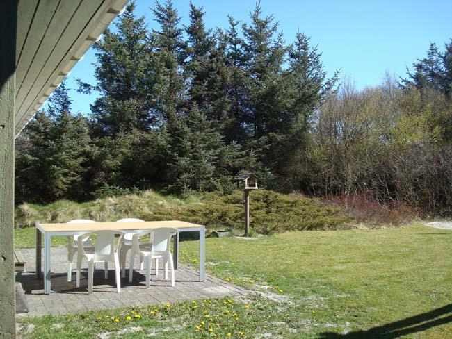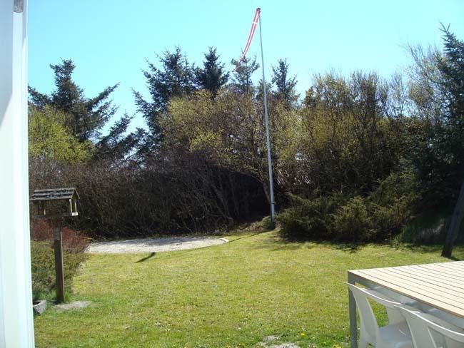 Grunden huset ligger på er god stor, og her er der rig mulighed for at have nogle aktive timer med familien på græsset. Huset ligger i et naturområde, og er man heldig kommer der en flok fasaner gående en tur over grunden. Hvis ikke kan du slappe af til den beroligende lyd af havets brus og fuglenes kvideren. Huset har to terrasser, den ene er mod syd, hvor man kan nyde eftermiddagssolen. Den anden terrasse er tillukket med højt hegn. Begge terrasser har terrassedøre direkte ind i huset.