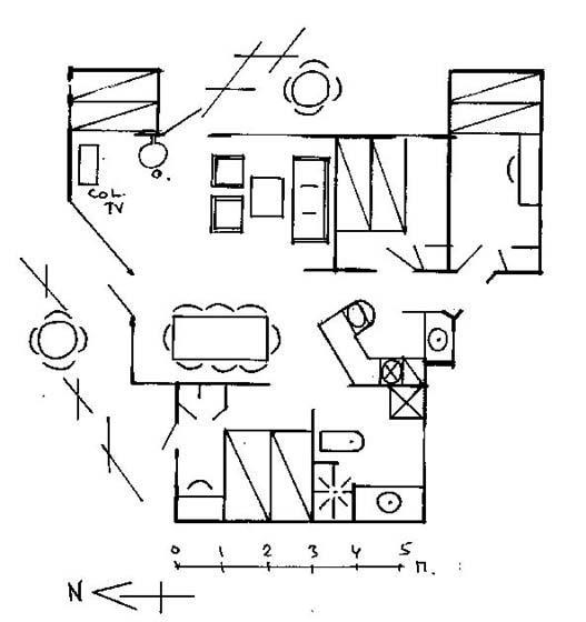 3. Der Warmwasserboiler, enthält 30 Liter sehr heisses Wasser. Wenn man direkt hinter einander duscht und während des Einseifens das Wasser abstellt, ist ausreichend heisses Wasser für zwei Personen da. Falls mehrere Personen duschen wollen, kann man in dem kleinen Haus, das parallel zum Weg liegt, das warme Wasser anschalten. Hinter diesem Badezimmer liegt eine kleine Sauna, die ebenfalls gerne benutzt werden kann.