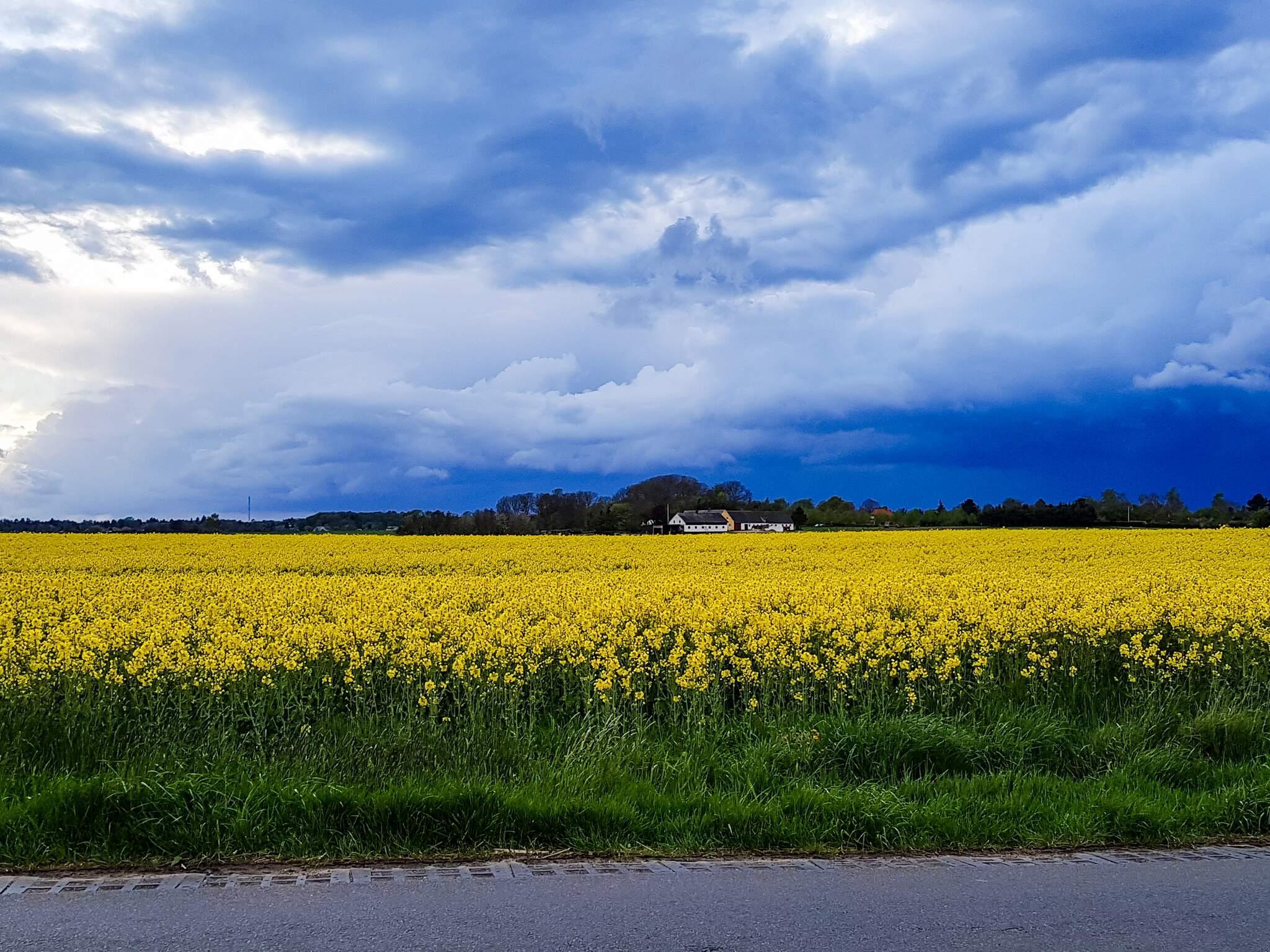 Til feriehuset hører praktisk entré/bryggers med vaskemaskine, tørretumbler og mikroovn. Derfra har du direkte adgang til det åbne køkken/alrum med åbent loft op til tagryggen og panoramavinduer med udsigt over haven.