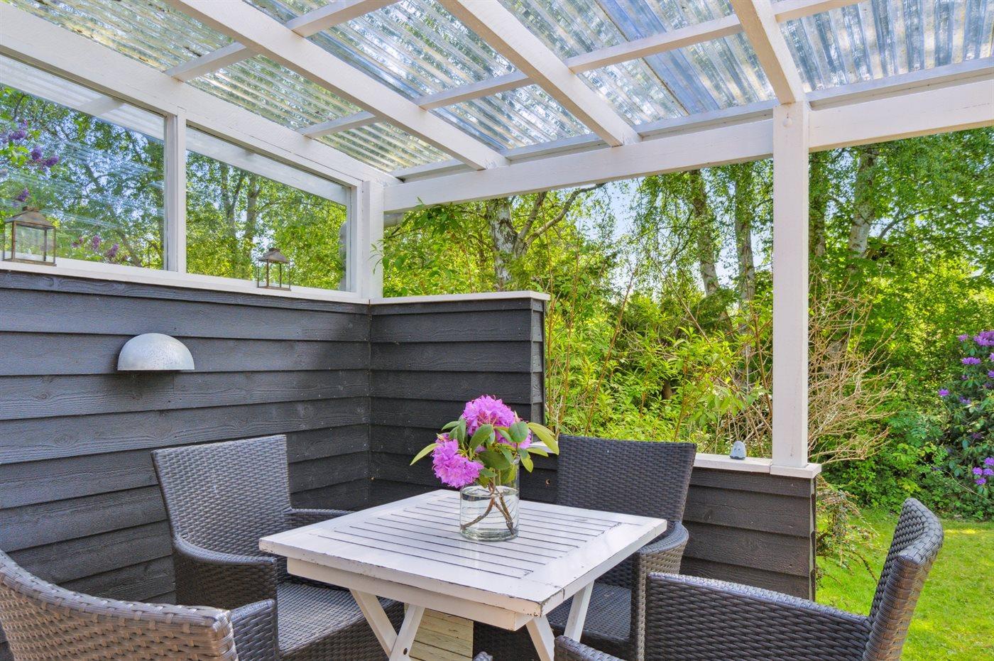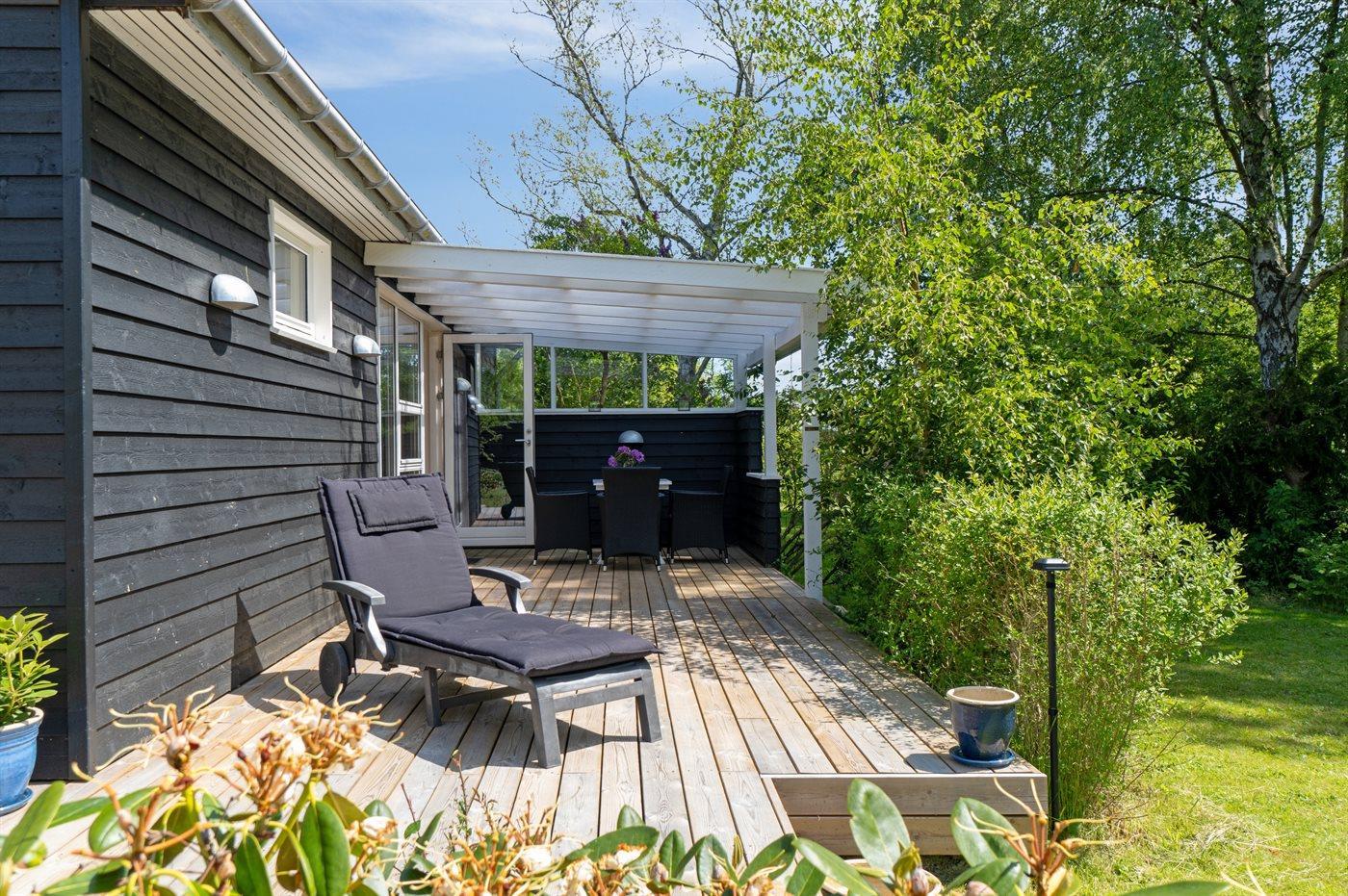 Ferieboligen er beliggende på en 1200 m² stor havegrund. Der er 850 m til havet. Nærmeste forretning er beliggende i en afstand af 700 m. Til ferieboligen hører åbent terrasseareal. Desuden er der overdækket terrasse. Grill til rådighed. Parkering ved ferieboligen.