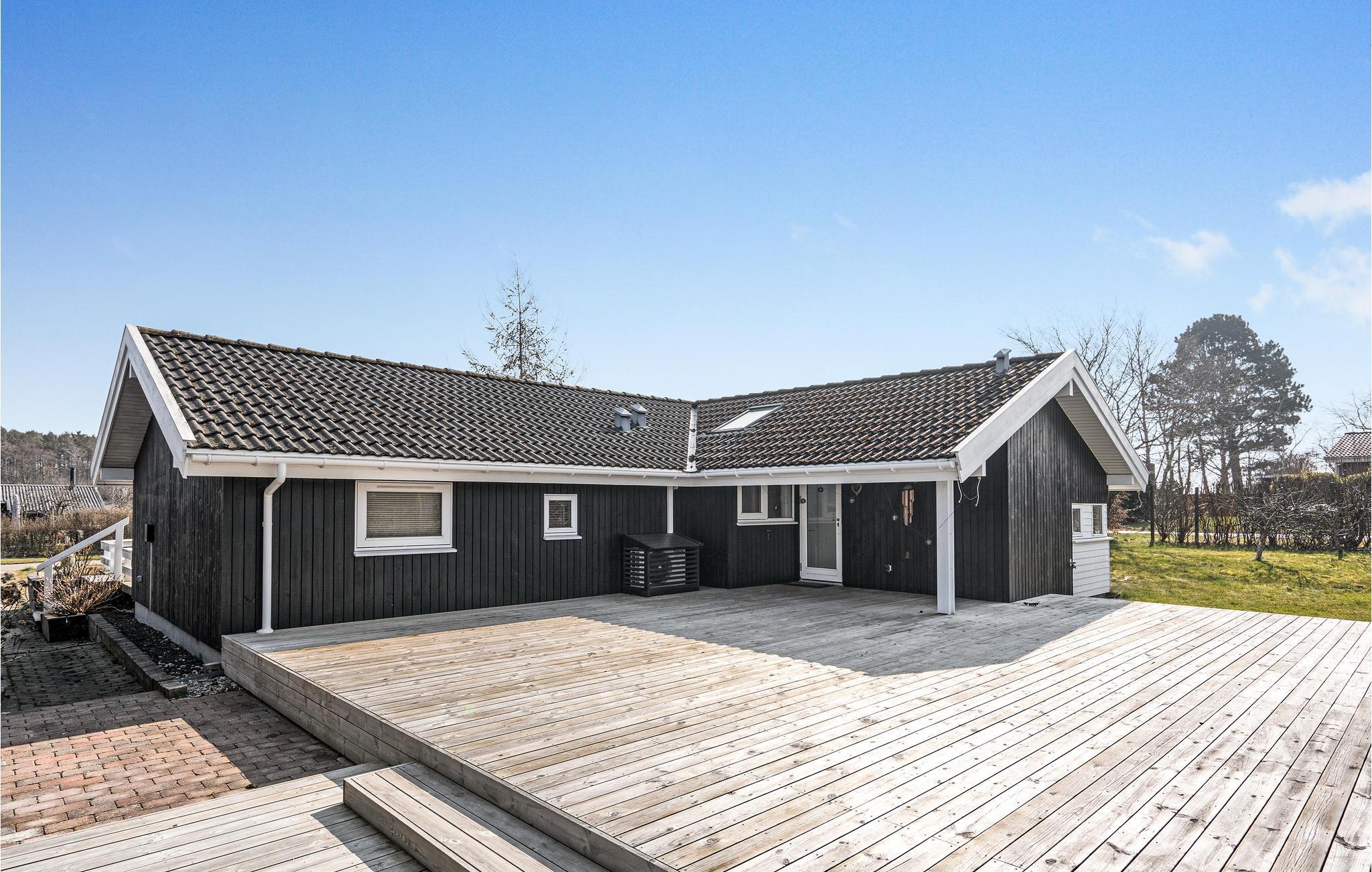 Velkommen til dette rummelige træhus, hvor I har adgang til en have og en rummelig terrasse. Her finder I flere gode faciliteter til udendørsaktiviteter til både store og små, herunder en grill til at tilberede lækker mad på, havemøbler til afslapning og en trampolin til leg og underholdning for børnene.